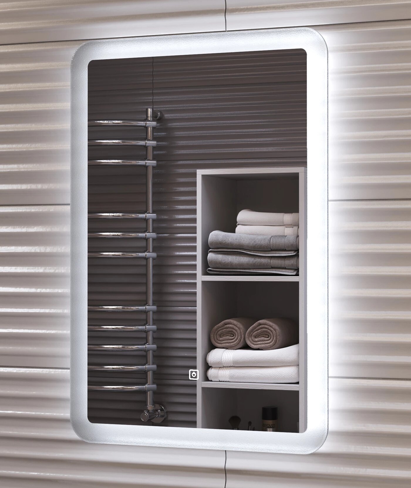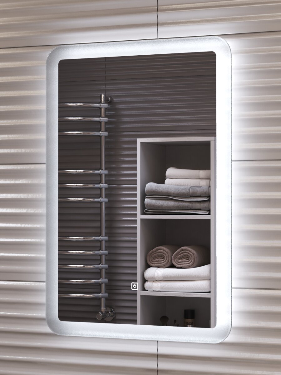 Зеркало настенное для ванной КерамаМане 70*100 см с холодной подсветкой 6000 К с сенсорной кнопкой