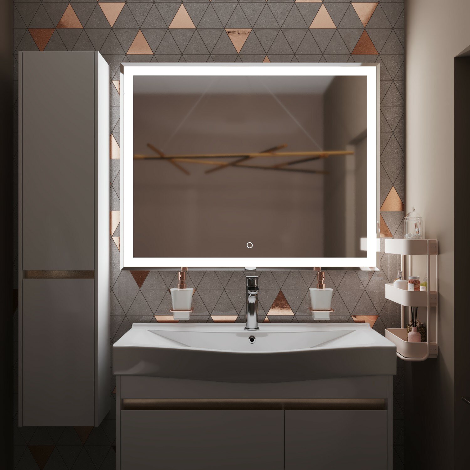 Зеркало настенное для ванной КерамаМане 70*100 см с холодной подсветкой 6000 К с сенсорной кнопкой