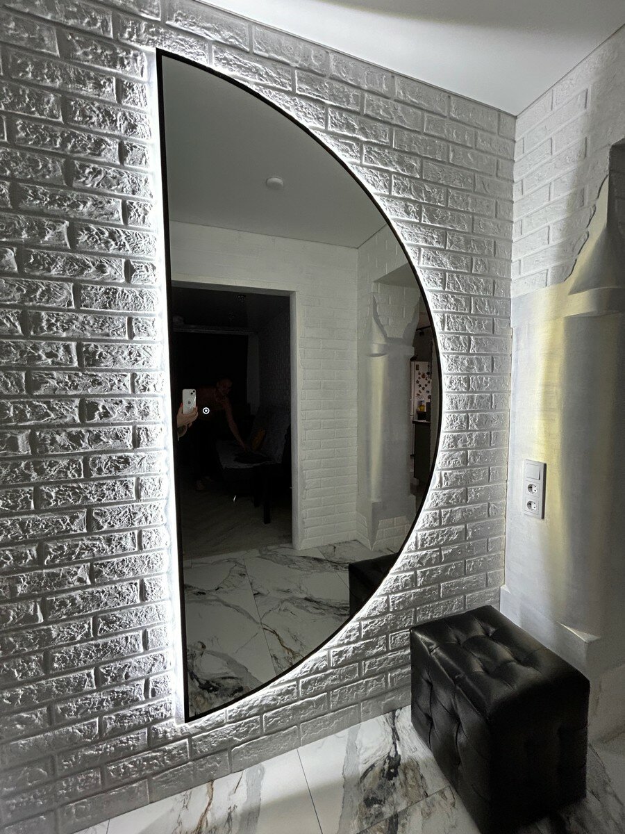 Зеркало с подсветкой полукруглое 100*200см + покраска по периметру (полукруг справа, прямой срез слева)
