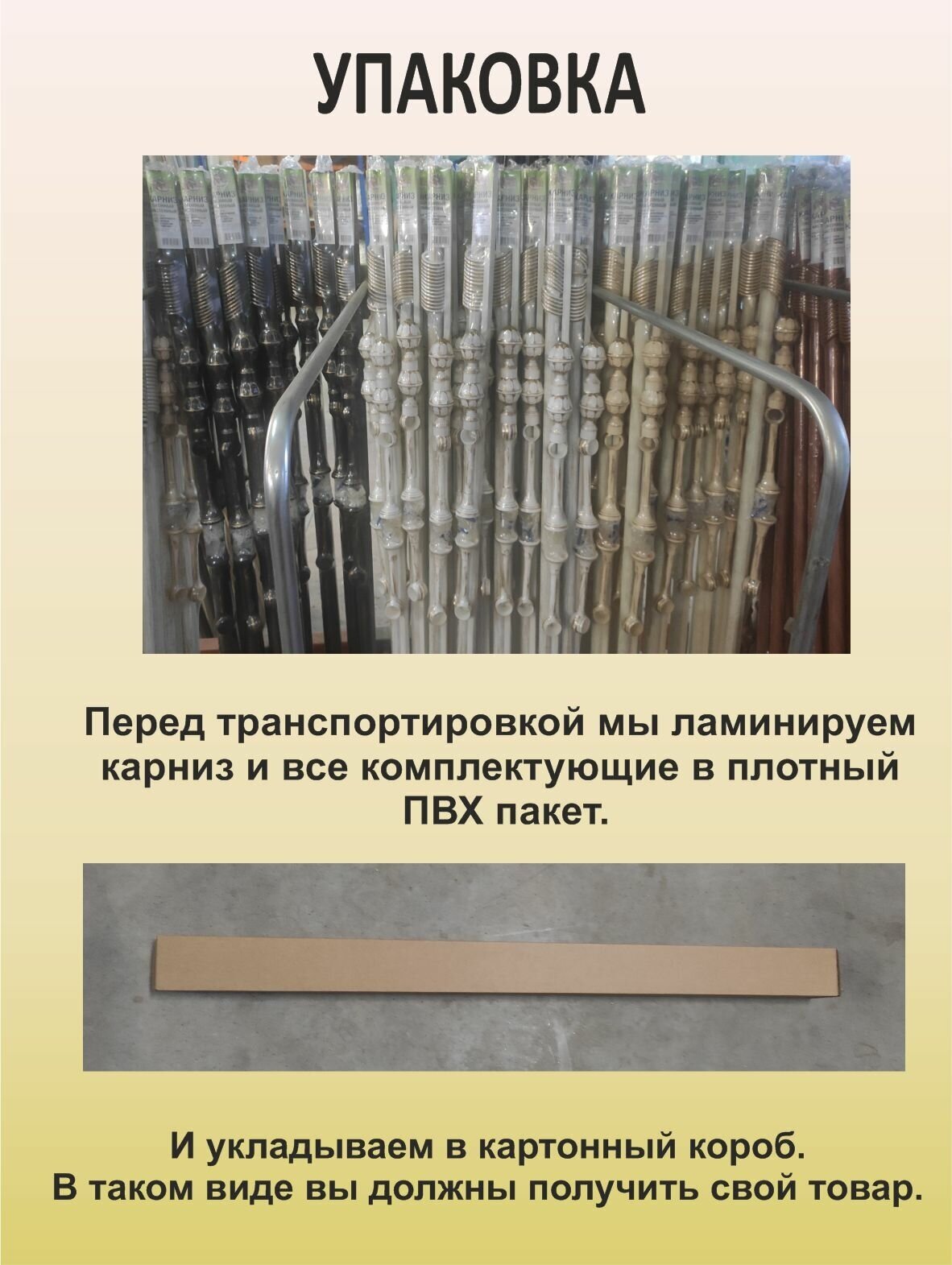 | Комплектация | 4 штанги диаметром 19 мм и 22 мм (одна штанга вставлена в другую), 3 кронштейна, 40 колец, 40 крючков, 2 наконечника, 3 дюбеля, 3 самореза, схема сборки. |