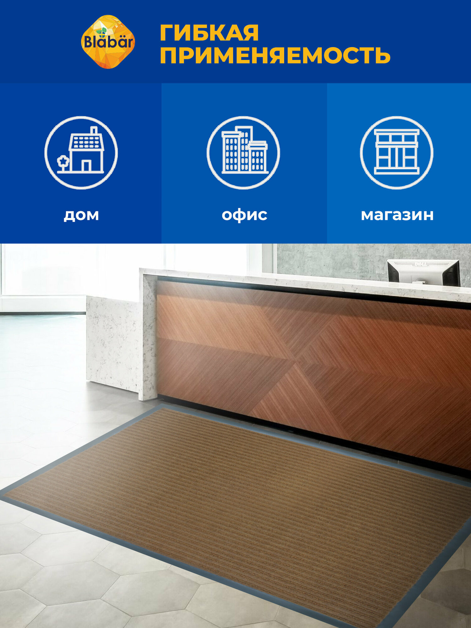 Коврик придверный в прихожую Blabar 90х150 cм . Коврик дверной в коридор на пол для прихожей.