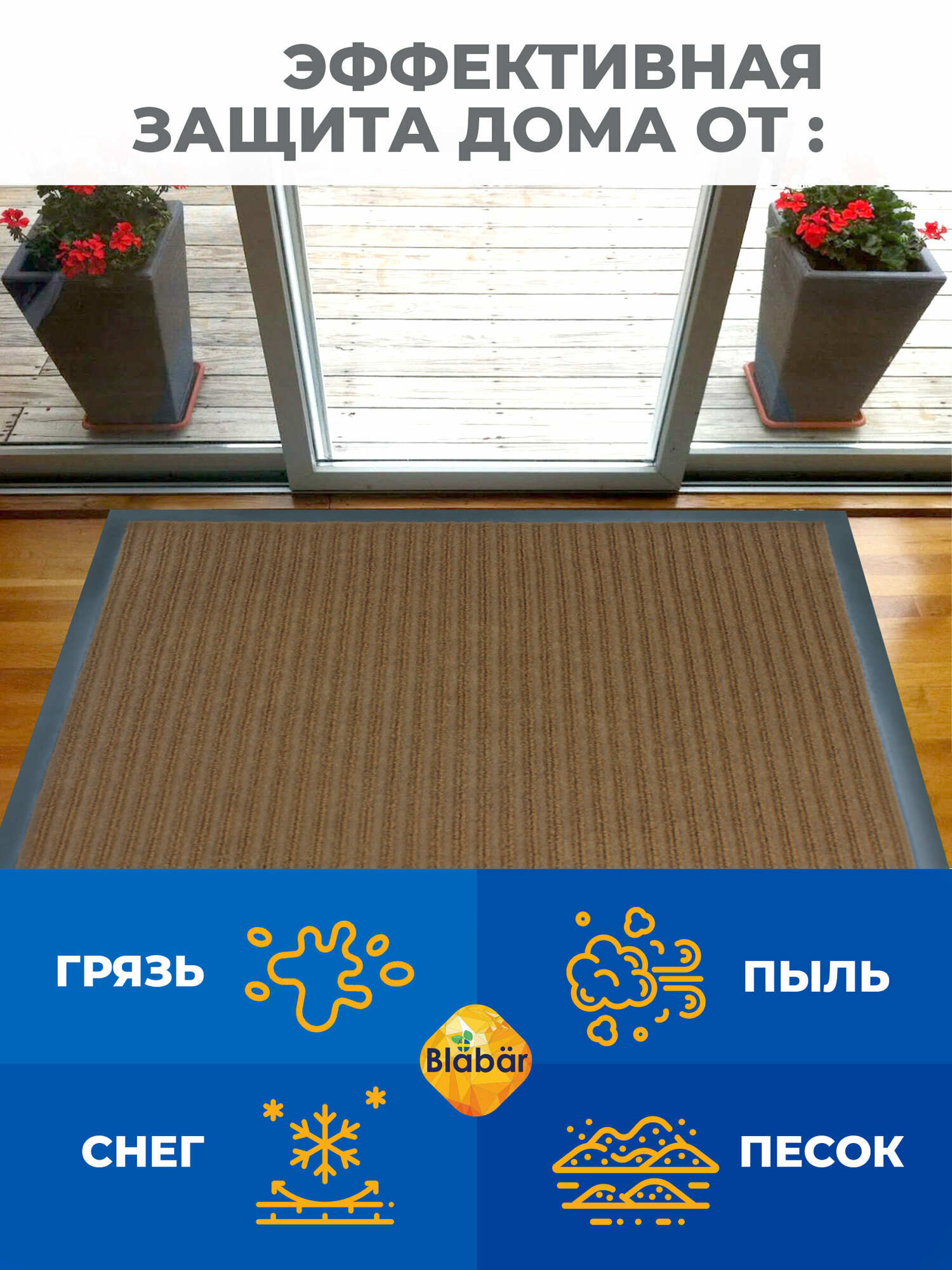 Коврик придверный в прихожую грязезащитный 40*60см Blabar, коврик входной влаговпитывающий