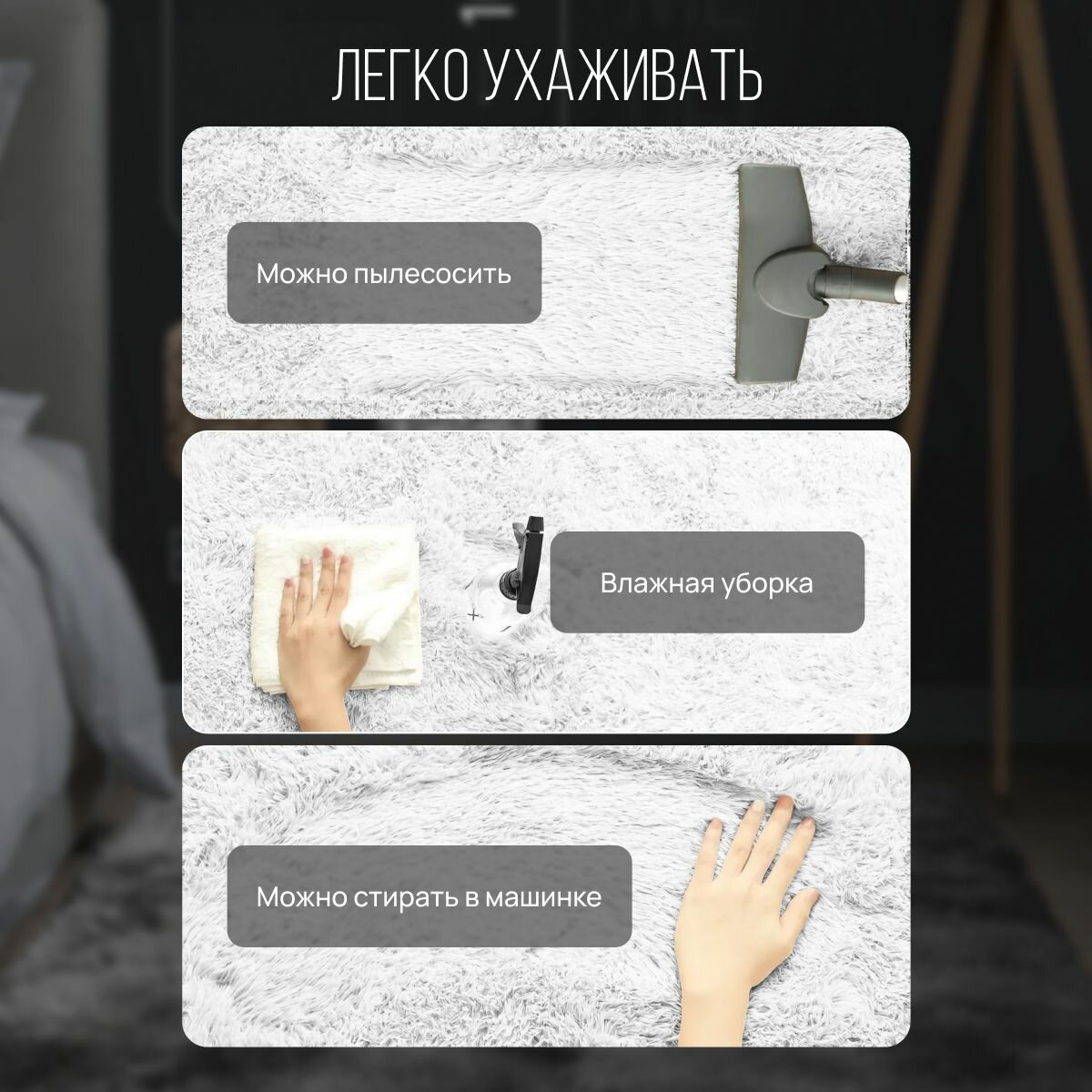 СохранитьКовер на пол с длинным ворсом меховой 80x160 белый Edenvibe ковер комнатный, прикроватный, пушистый в комнату, спальню интересное: