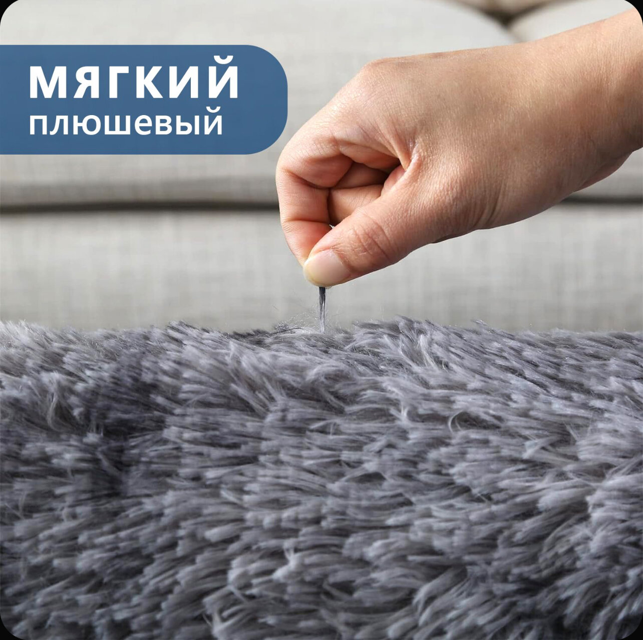 Купить Ковер на пол с длинным ворсом меховой 160х120 см, темно-серый, мягкий, пушистый, антискользящий, в гостиную, спальню