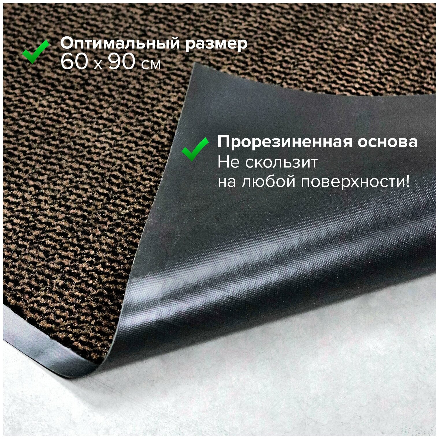 Коврик придверный износостойкий влаговпитывающий, 90х150 см, тафтинг, коричневый
