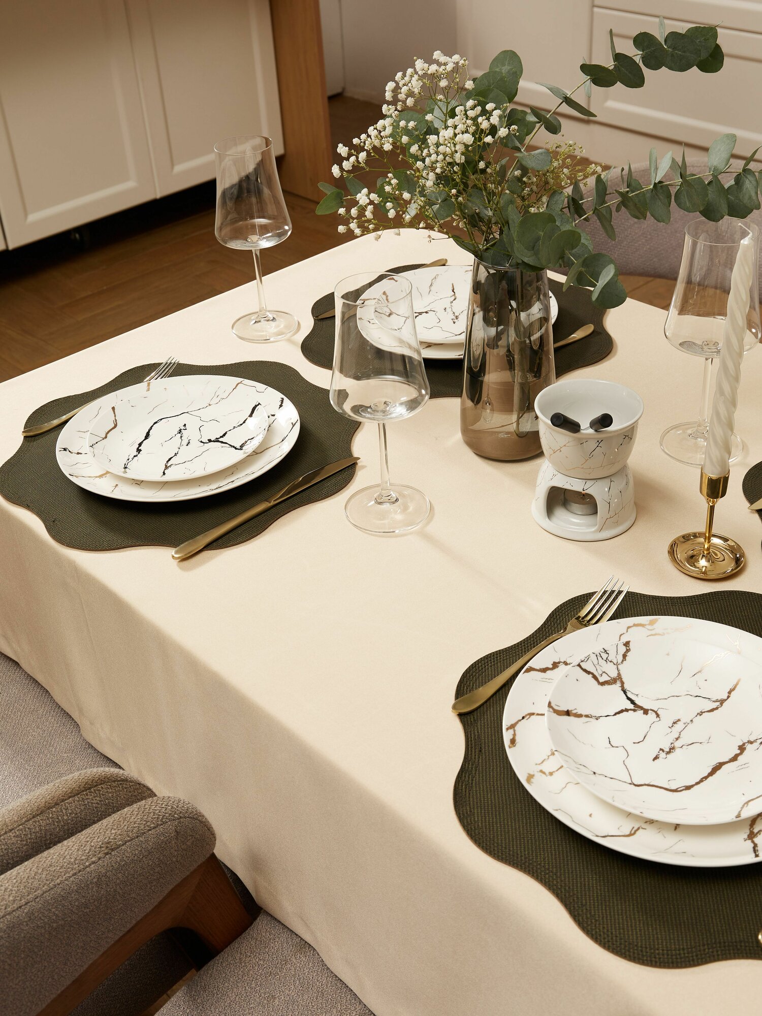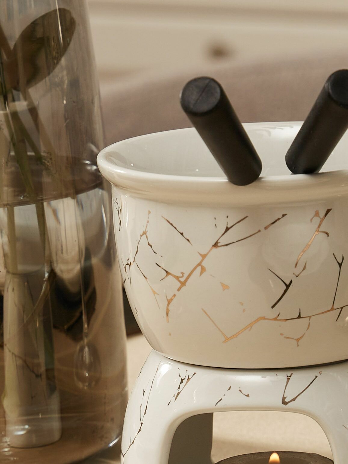 Набор для фондю Lefard / Лефард Золотой Мрамор с утолщенным дном, из жаропрочной керамики, цвет белый с рисунком, 270мл, 6 предметов