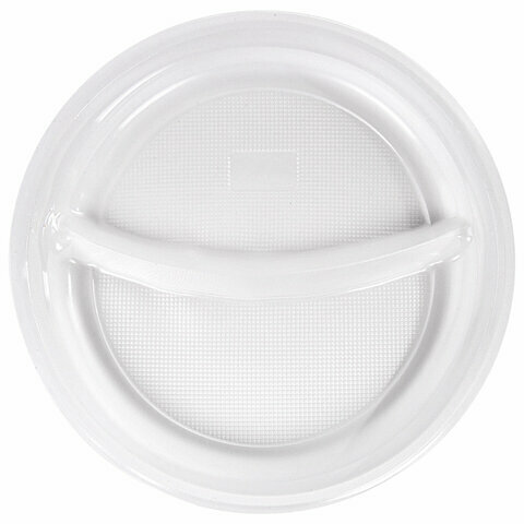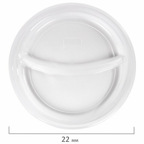 Купить Одноразовые тарелки 2-х секционные комплект 100 шт. 220 мм, белые, ПП, холодное/горячее, LAIMA стандарт, 608768