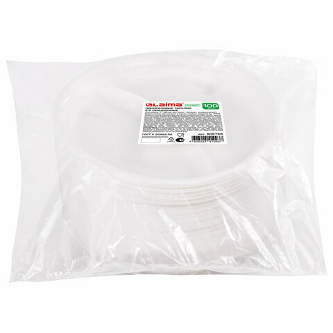 Одноразовые тарелки LAIMA 2-х секционные комплект 100 шт. 220 мм, белые, ПП, холодное/горячее, стандарт,