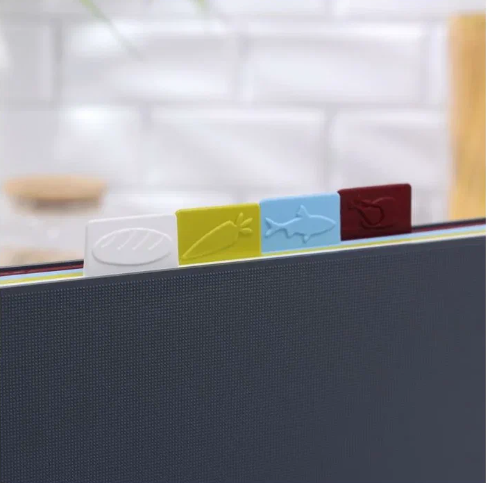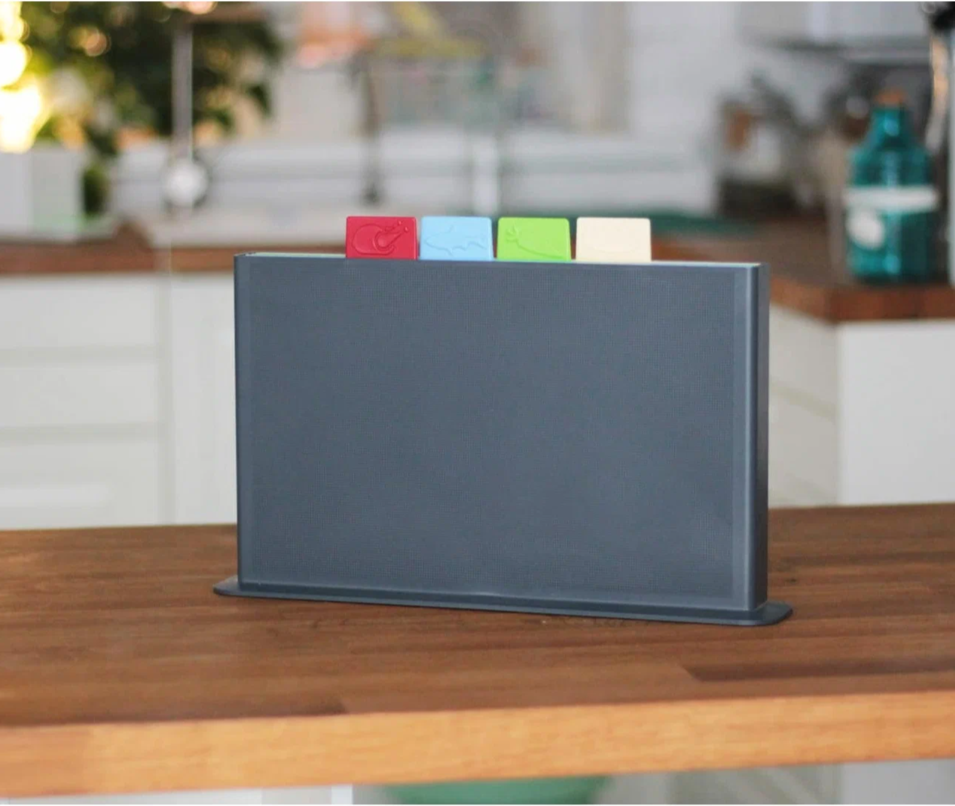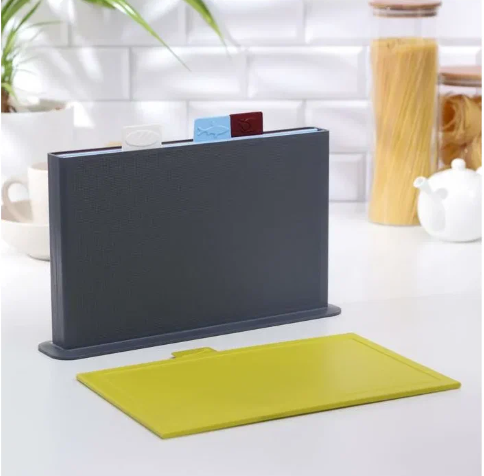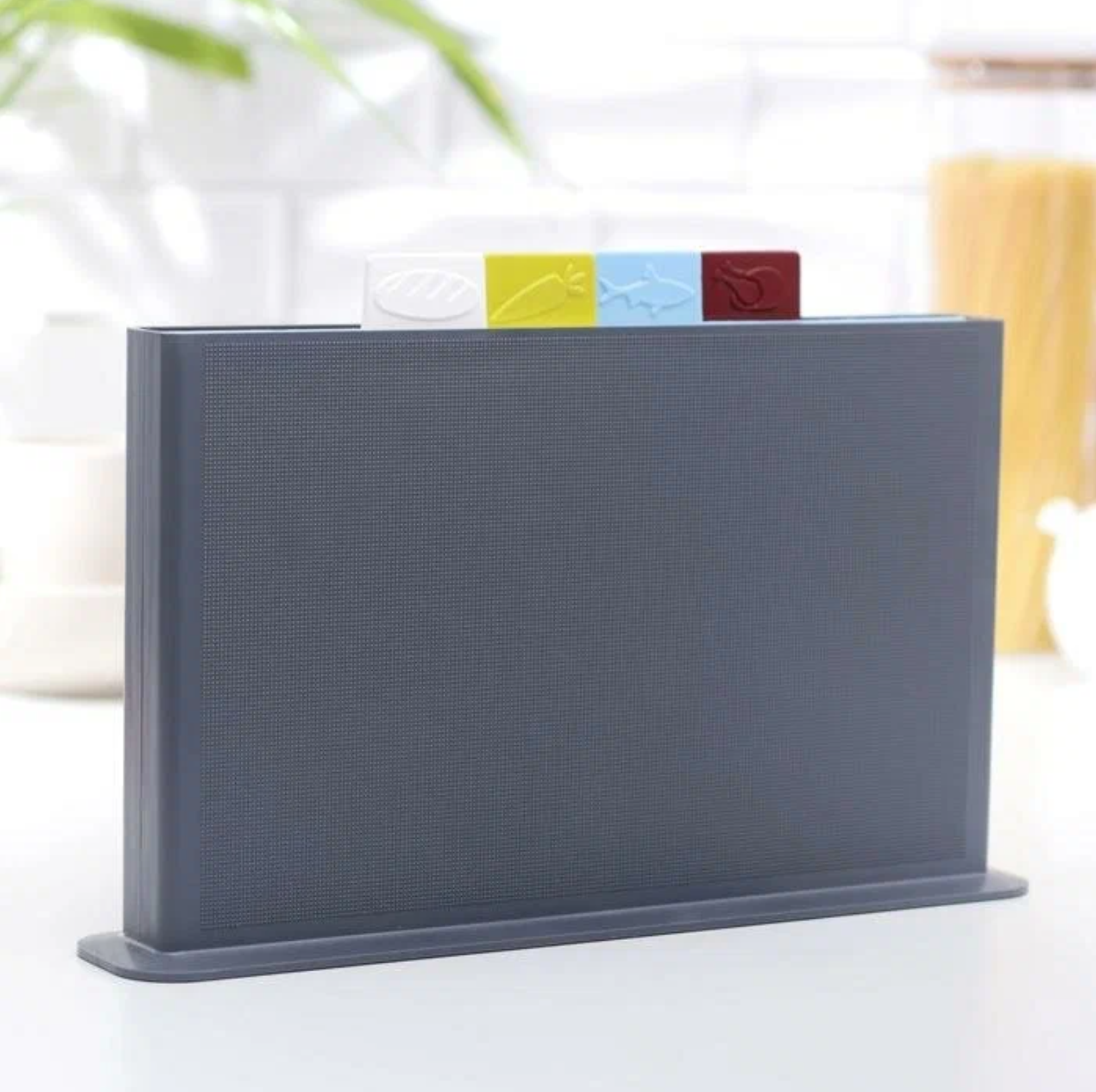 Набор разделочных досок на подставке, 30х20 см, 4 шт., бежевый/голубой/зеленый/красный