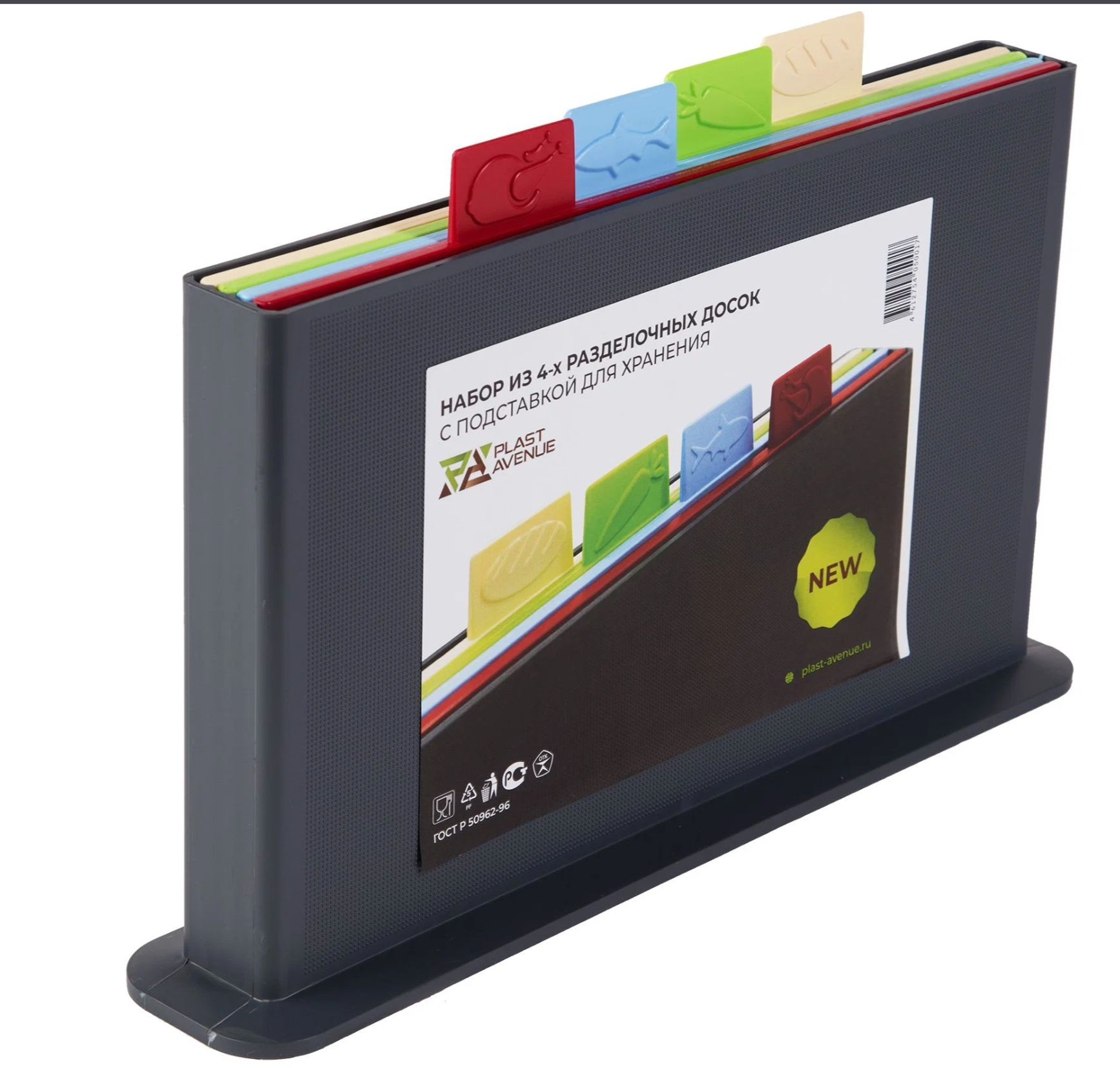 Набор разделочных досок Plast Avenue на подставке, 35х20 см, 4 шт, бежевый/голубой/зеленый/красный интересное: