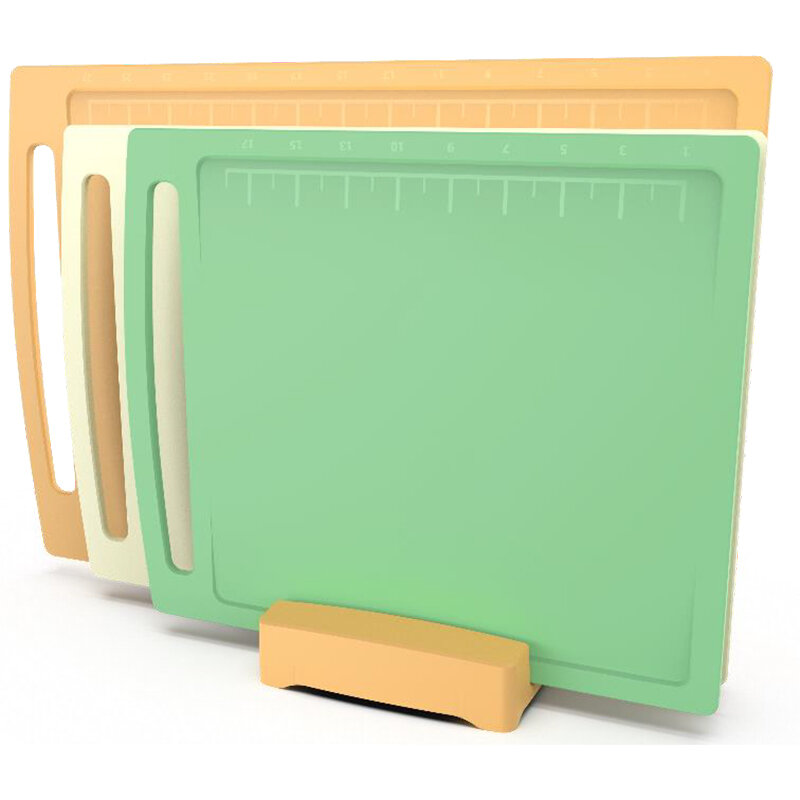 Набор пластиковых разделочных досок с мерной шкалой 3 штуки для кухни на подставке Practic 24,3х19,8 см 29х19,8 см 33,8X23 см Полимербыт