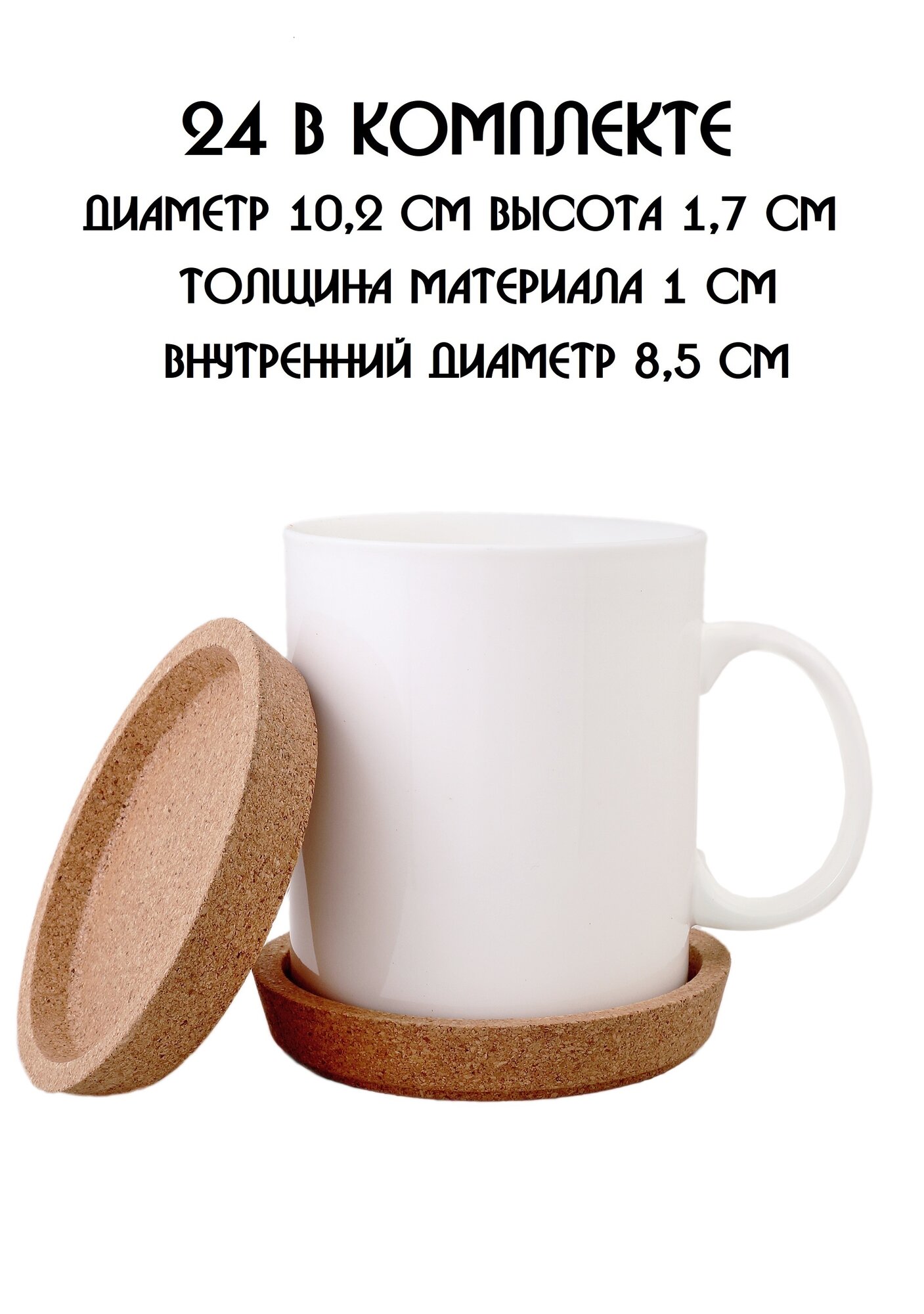 | Дополнительная информация | Подставки под кружку, подставки под стакан, подставки под чашку, под бокал, под горячее, бирдекель из натуральной пробки |