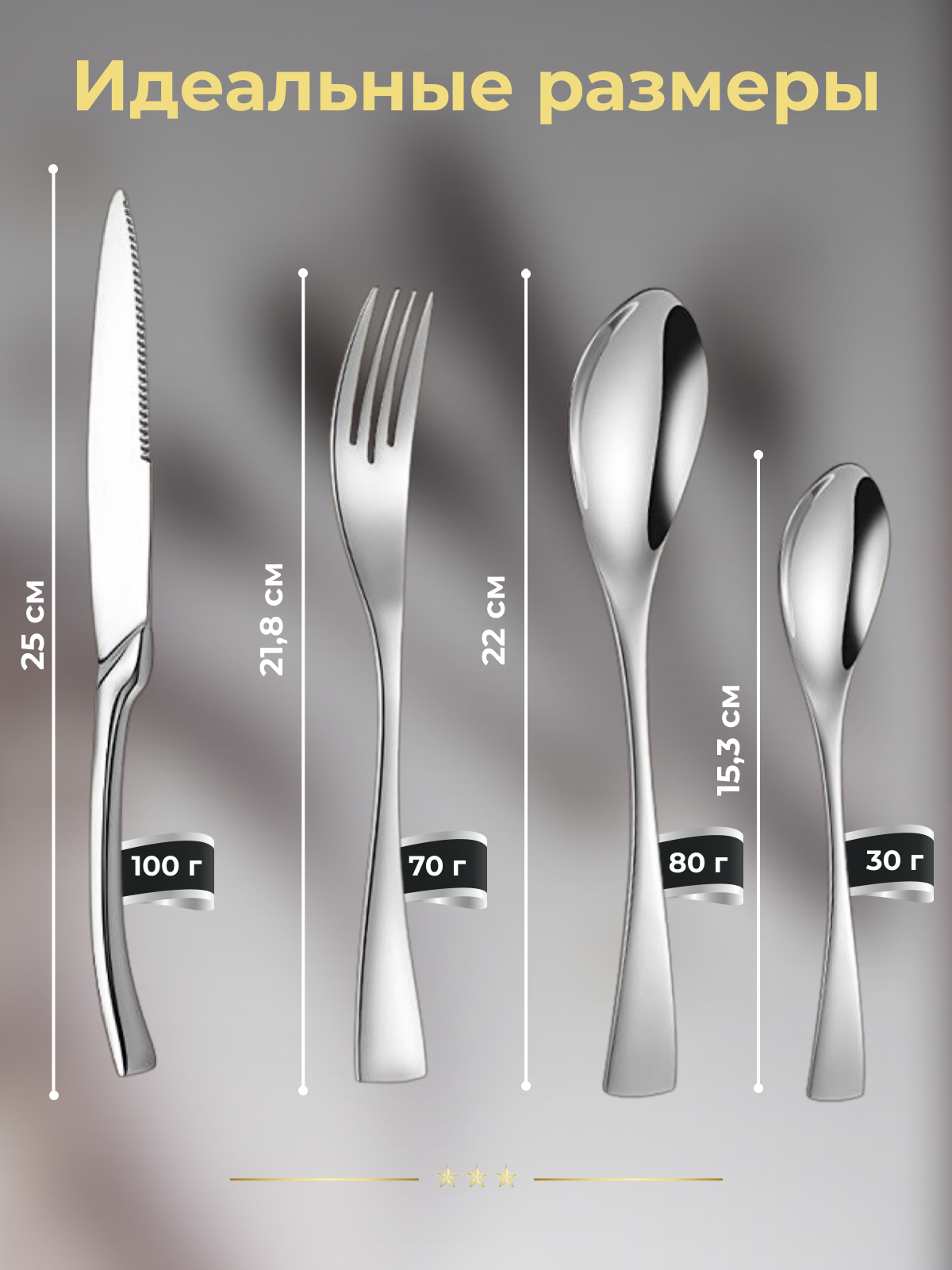 Набор столовых приборов на 6 персон 24 предмета цвет серебро, эксклюзивный