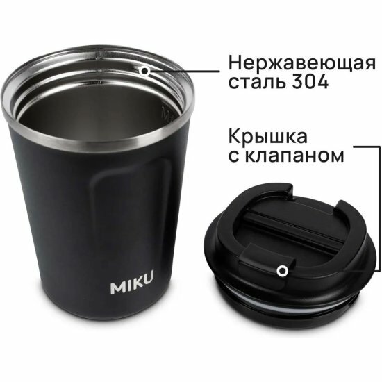Термокружка MIKU 380 мл Чёрная (TH-MG-380B)