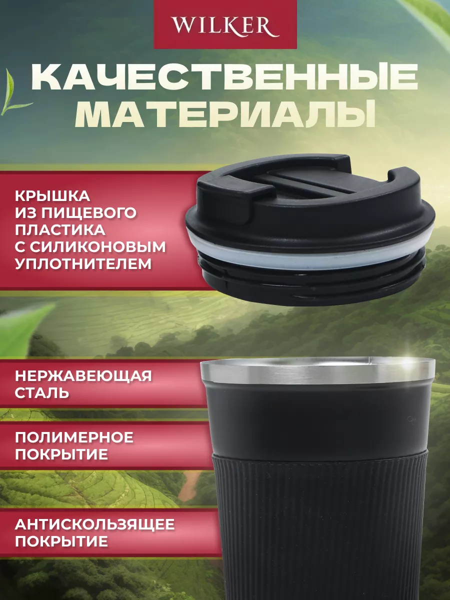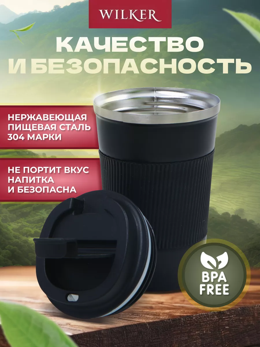 Wilker Автомобильная термокружка черная 380 мл для чая и кофе