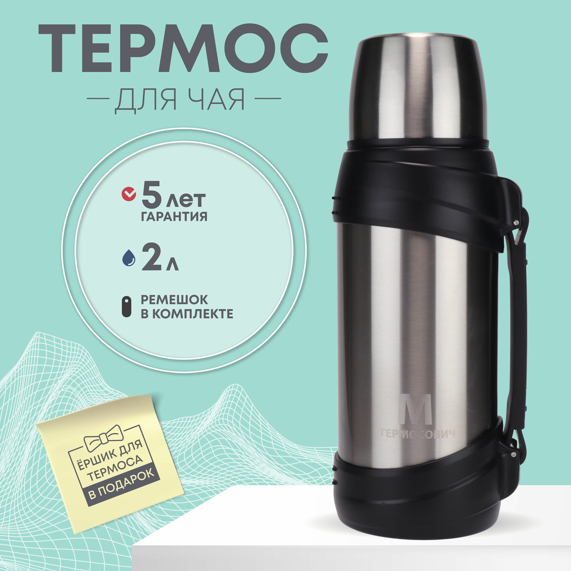 Купить Термос для чая 2 литра серебряный, вакуумный подарок