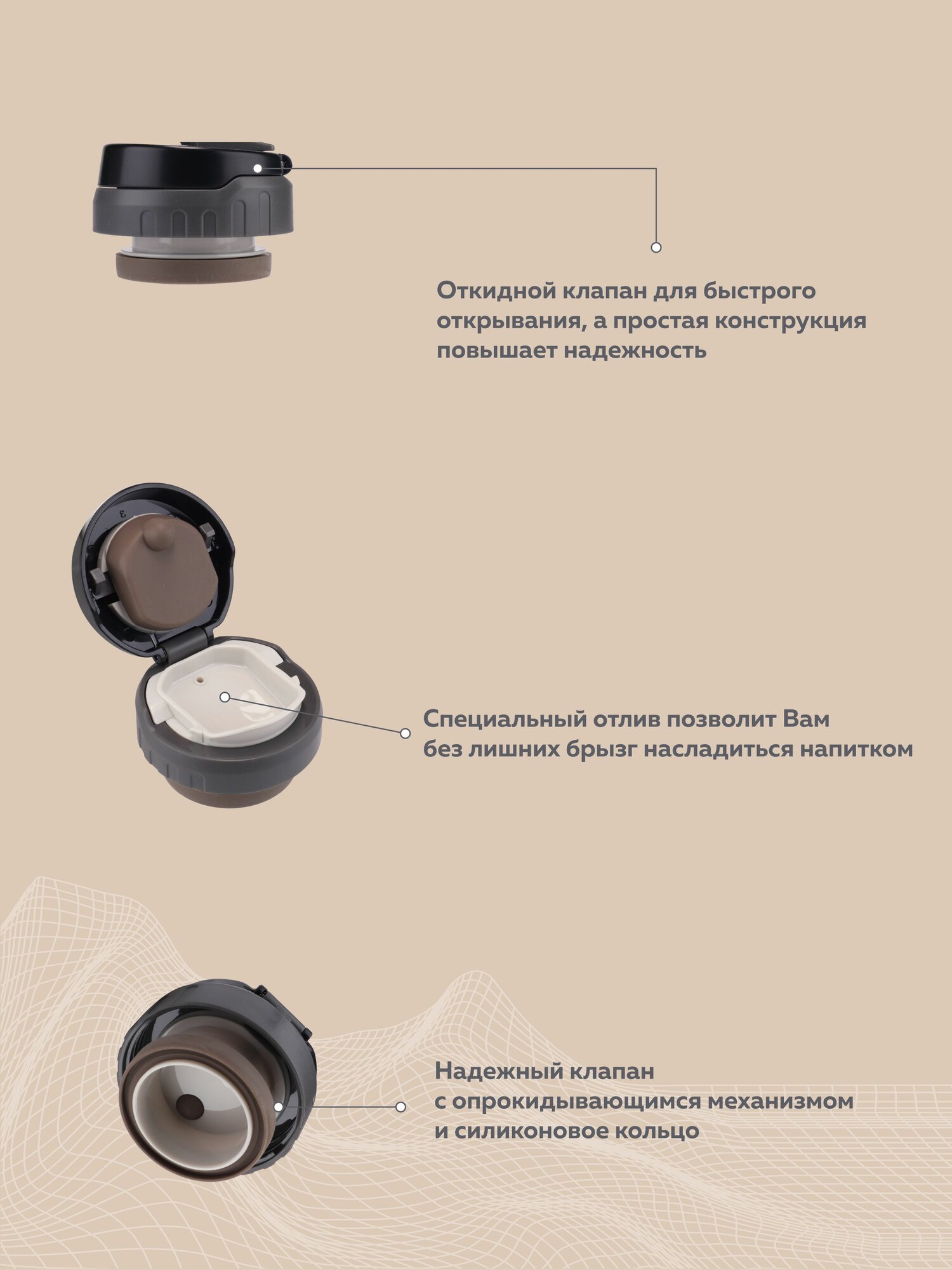 | Особенности | вакуумный / кнопка-клапан / крышка-чашка / ручка на корпусе |