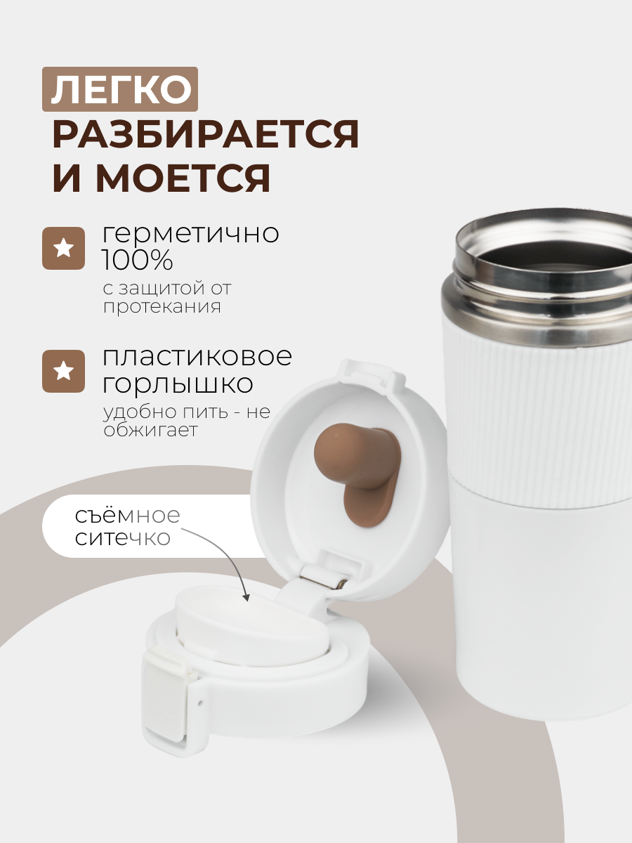 Купить Термокружка белая для кофе и чая детская в школу 380 мл, кружка термос, подарки на 8 марта женщинам