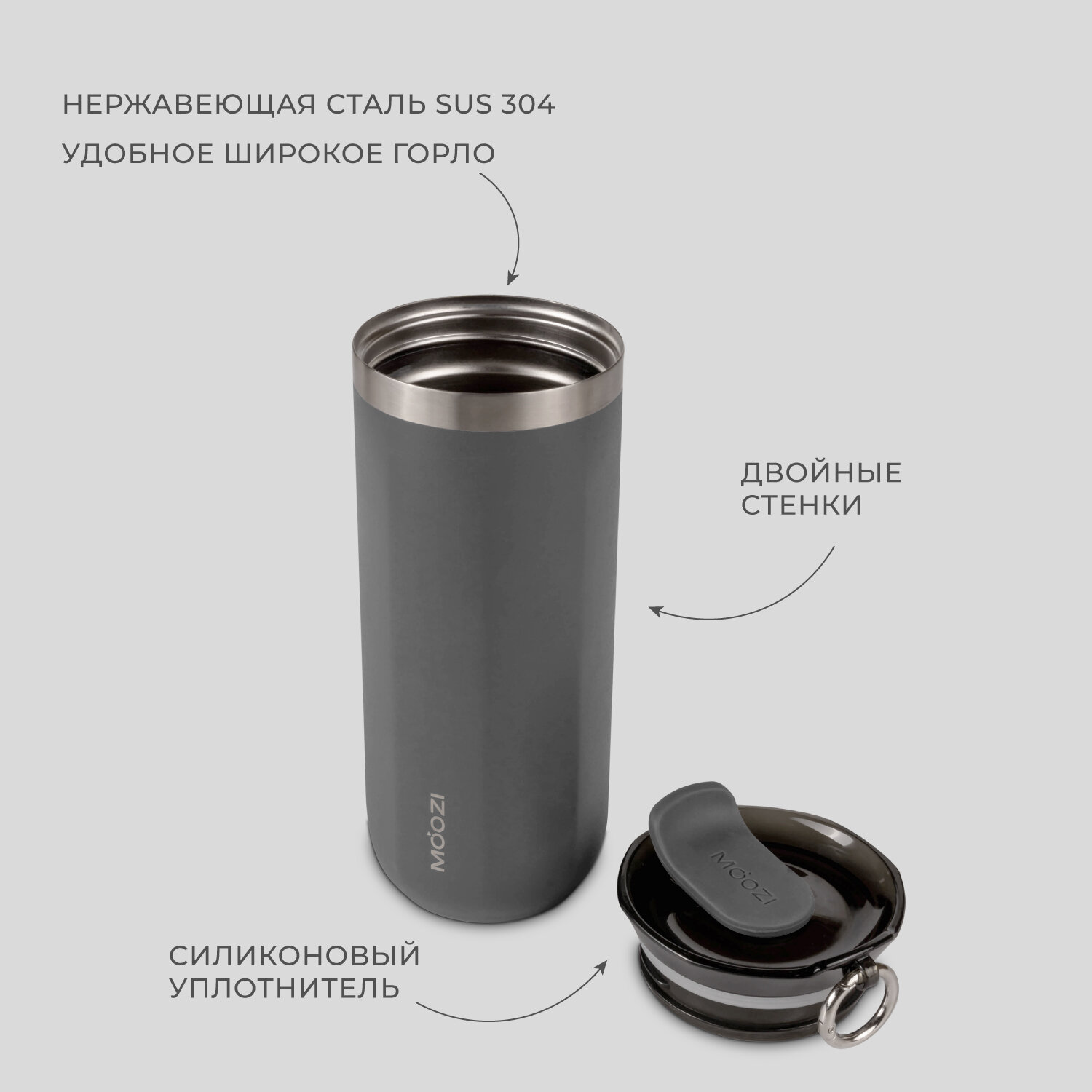 Ниже Вы можете прочитать отзывы на Термокружка MOOZI, для холодных и горячих напитков, 400 мл, цвет серый, ознакомится с подробными характеристиками, посмотреть интересные обзоры и фотографии на Термокружка MOOZI, для холодных и горячих напитков, 400 мл, цвет серый.