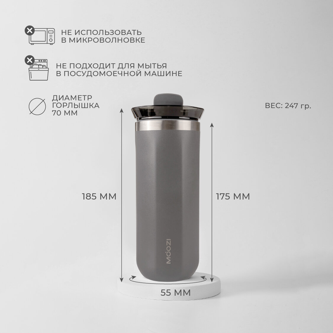 Термокружка MOOZI для холодных и горячих напитков, 300 мл, цвет серый