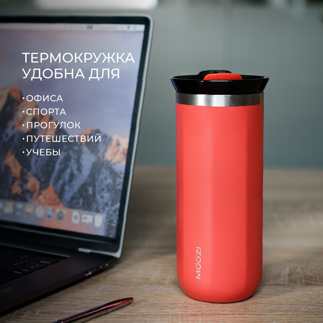Купить Термокружка MOOZI, для холодных и горячих напитков, 400 мл, цвет красный