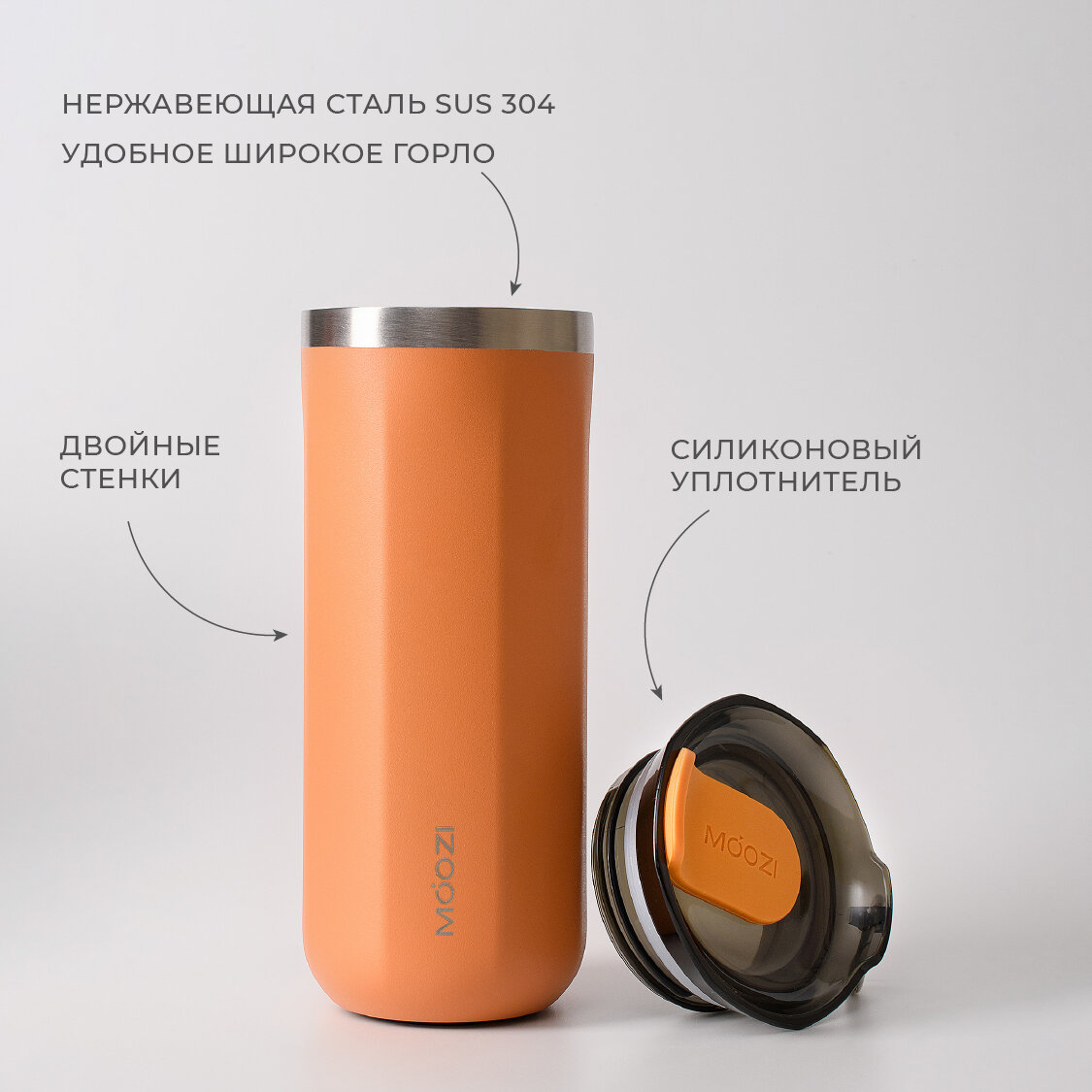 Термокружка MOOZI 400 мл, цвет серый