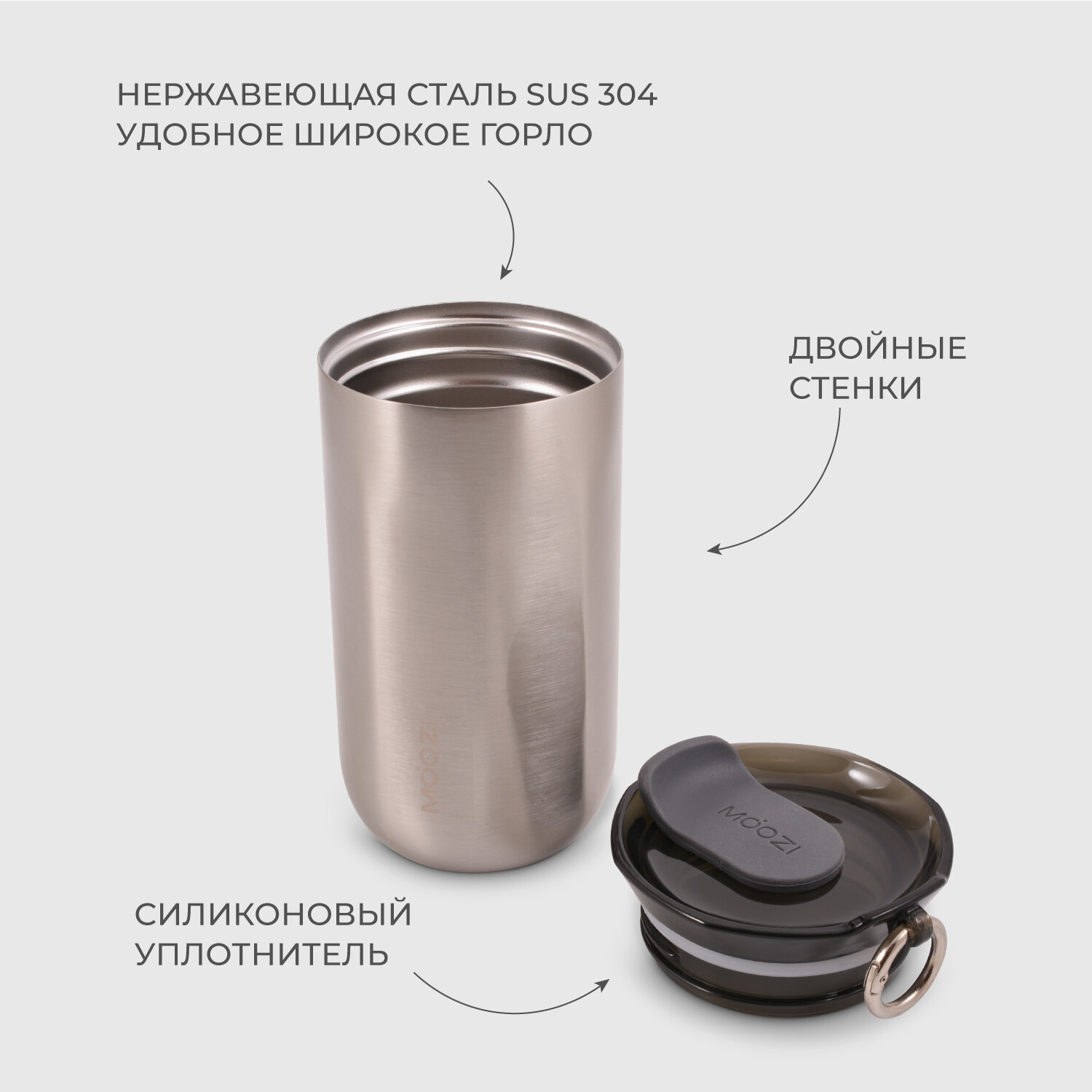 Термокружка MOOZI для холодных и горячих напитков, 300 мл, цвет серый