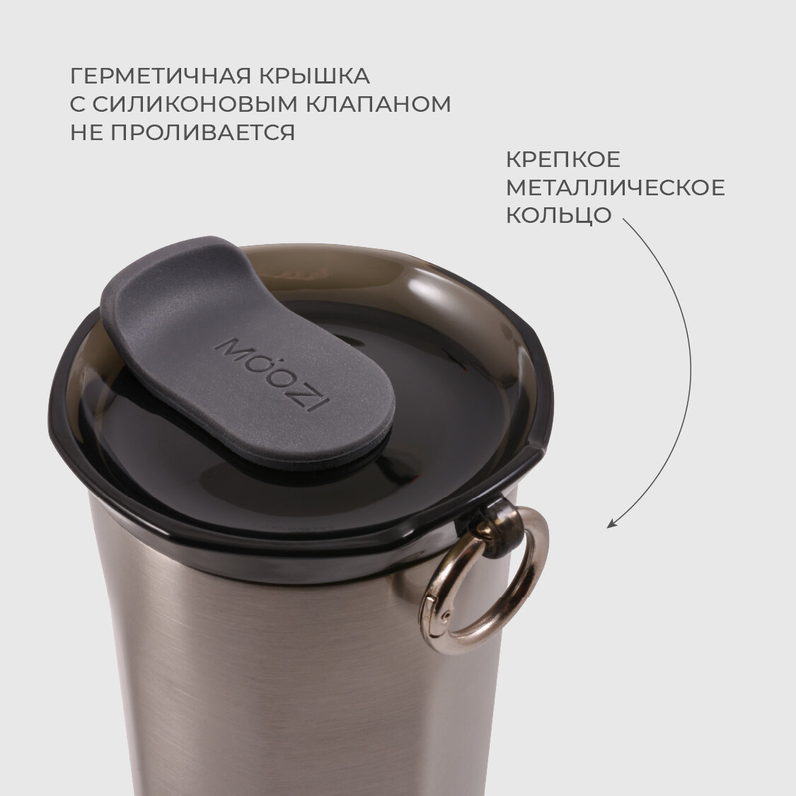 Термокружка MOOZI, для холодных и горячих напитков, 400 мл, цвет серый