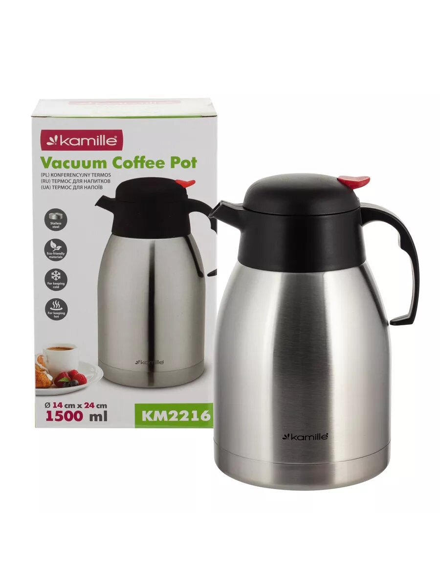 Термос конференция 1500 мл. Kamille KM 2216 из нержавеющей стали (1,5 л. / серебристый)