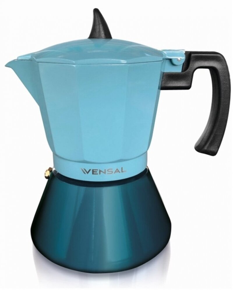 Гейзерная кофеварка Vensal VS3201 6 чашек. Материал алюминий, нержавеющая сталь, подходит индукции, цвет черный
