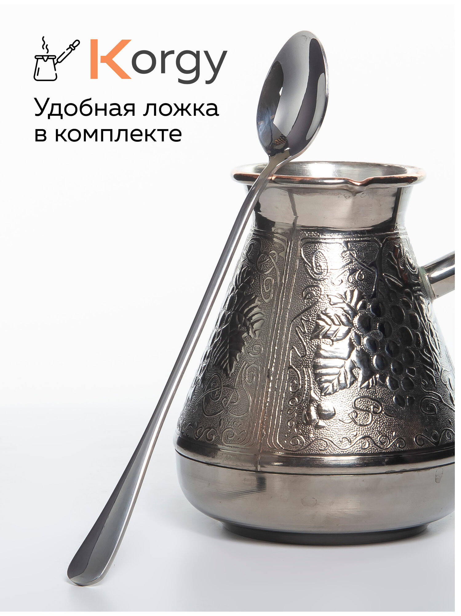 Турка для кофе Korgy медная 400 мл с ложкой, в надежной упаковке