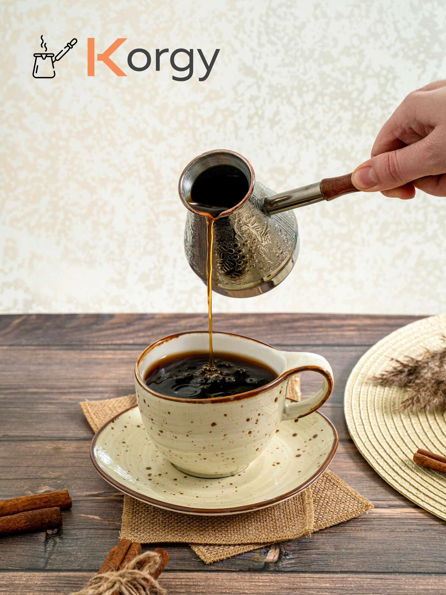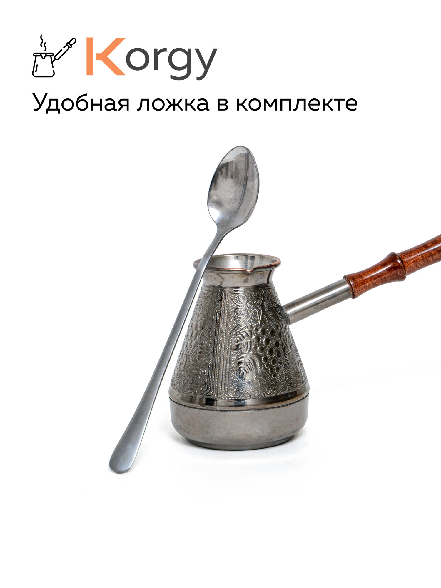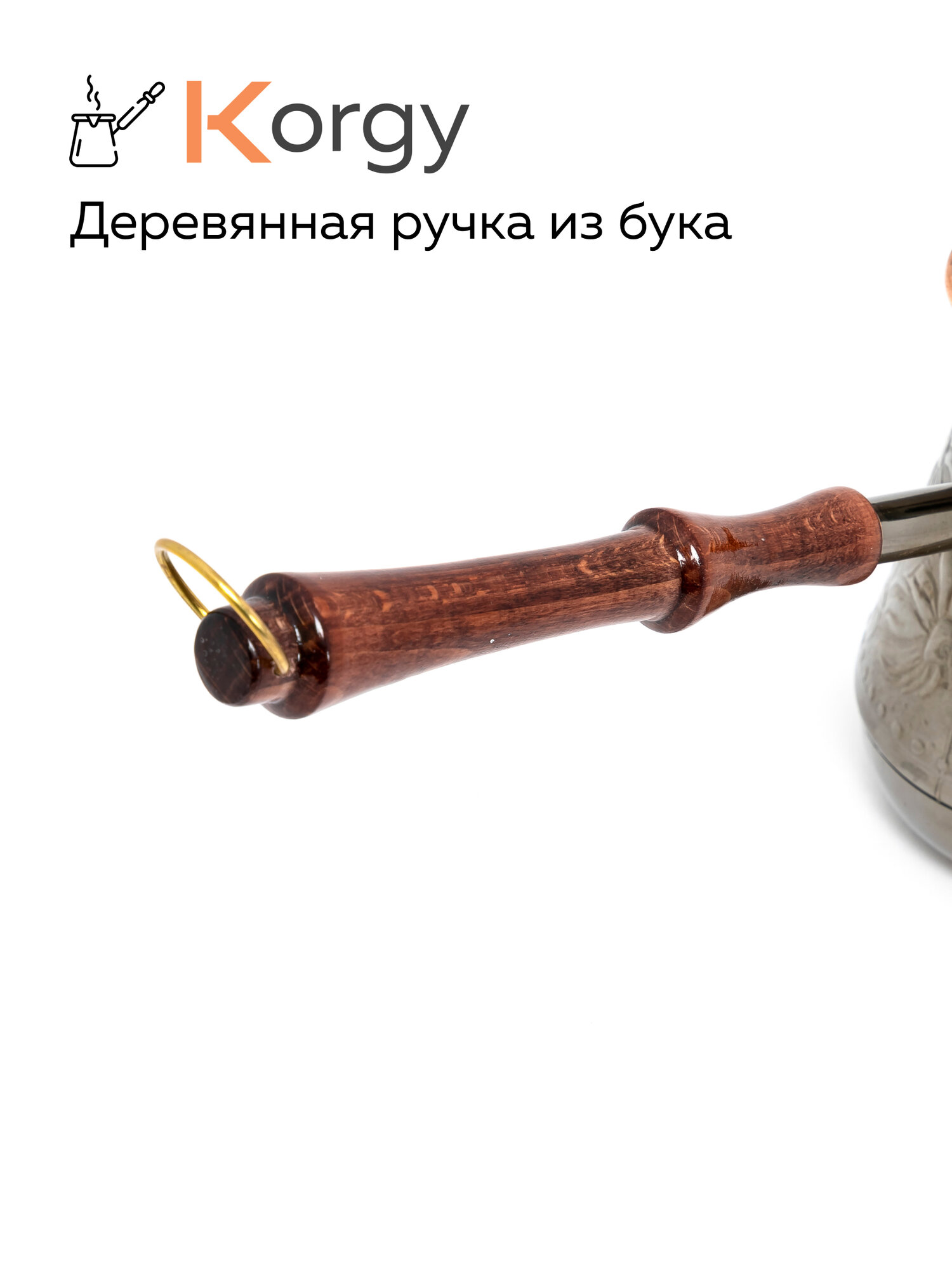 Турка Korgy, медная, для кофе, 600мл, с ложкой, теплоизоляционная ручка