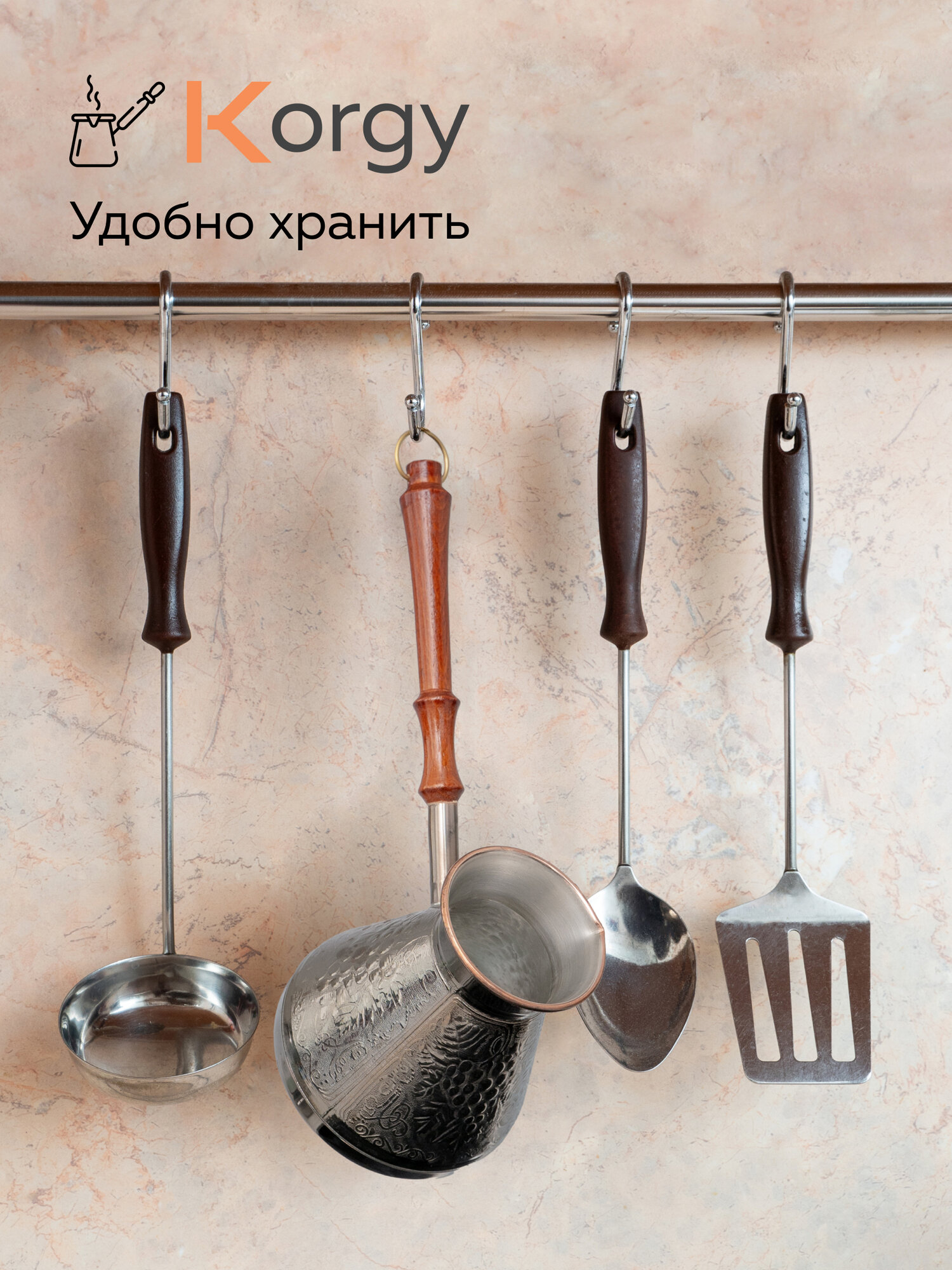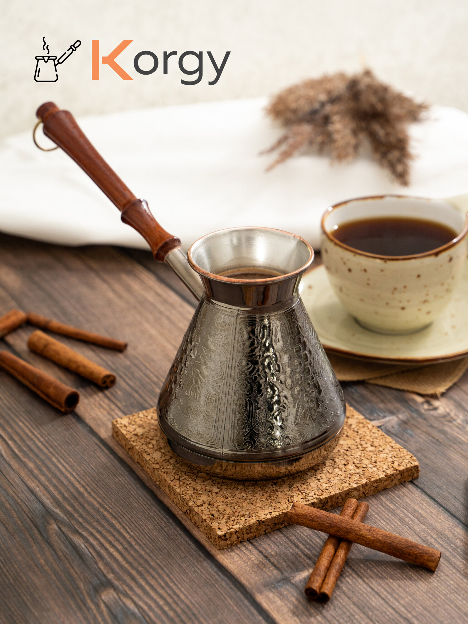 Турка Korgy, медная, для кофе, 600мл, с ложкой, теплоизоляционная ручка
