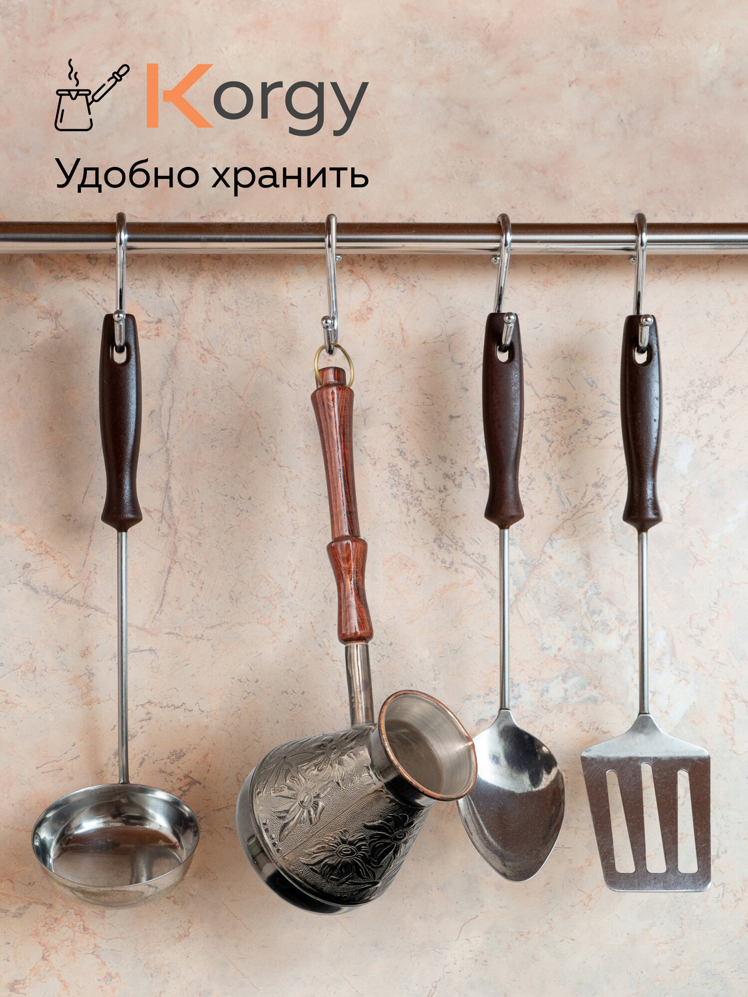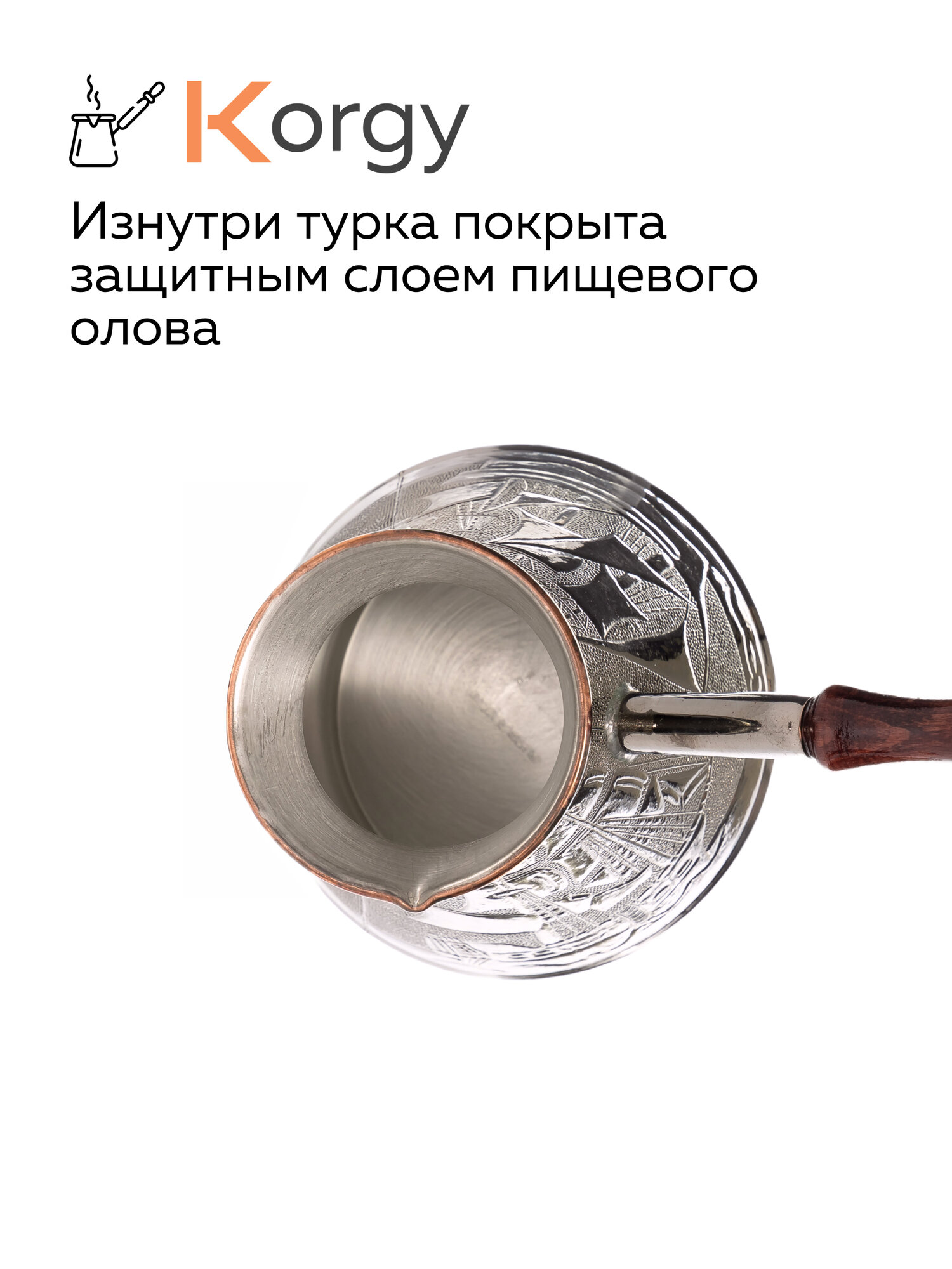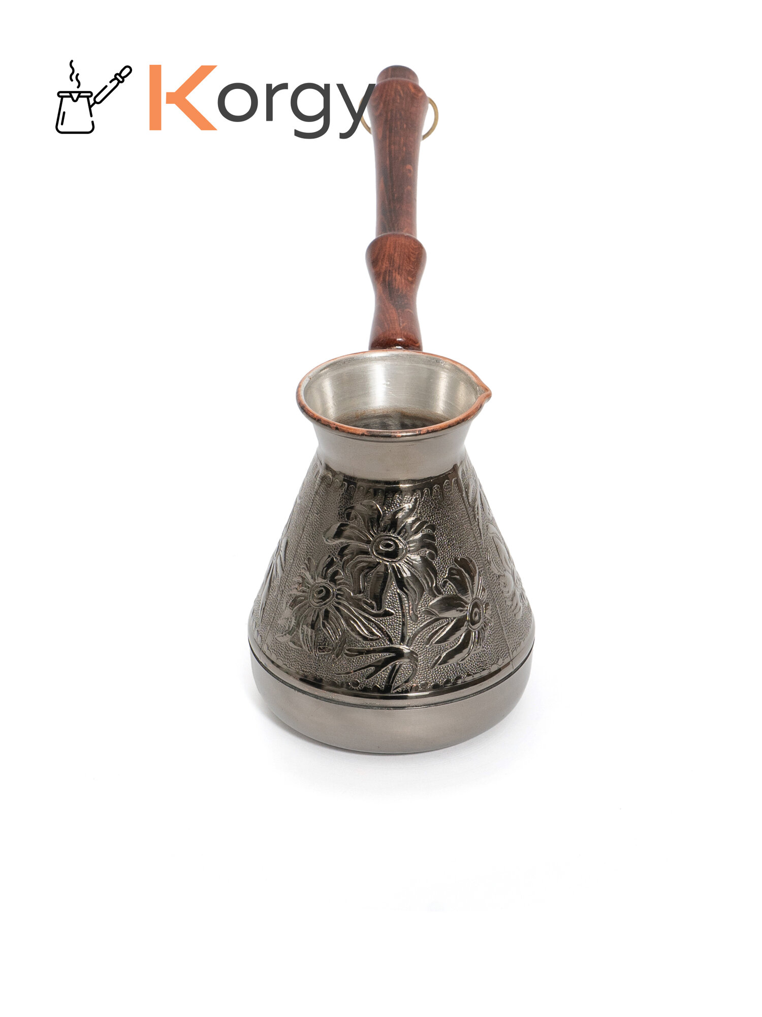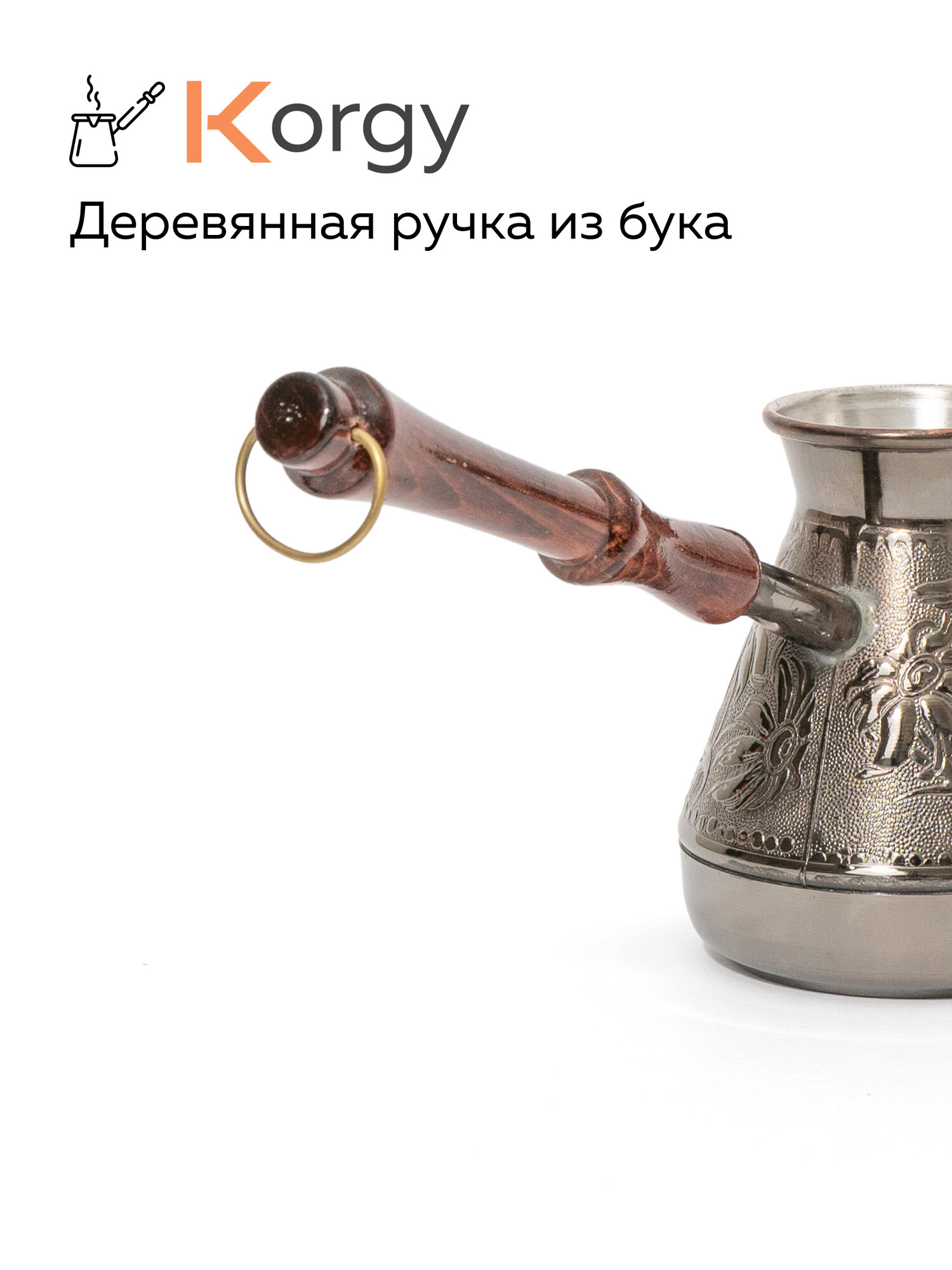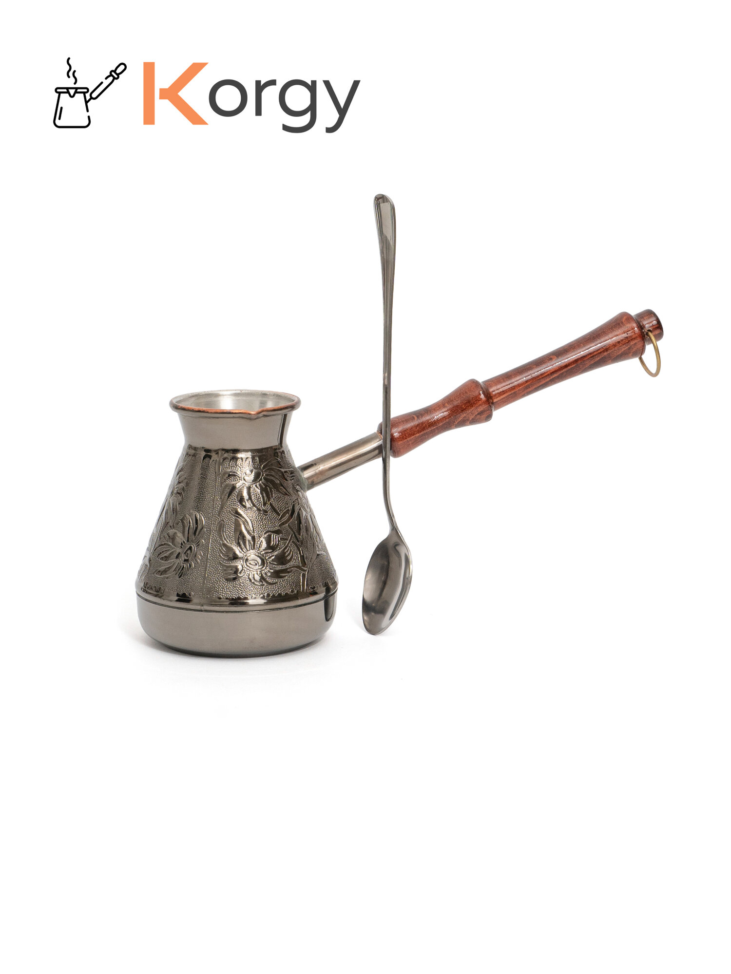 Турка Korgy, медная, для кофе, 600мл, с ложкой, теплоизоляционная ручка