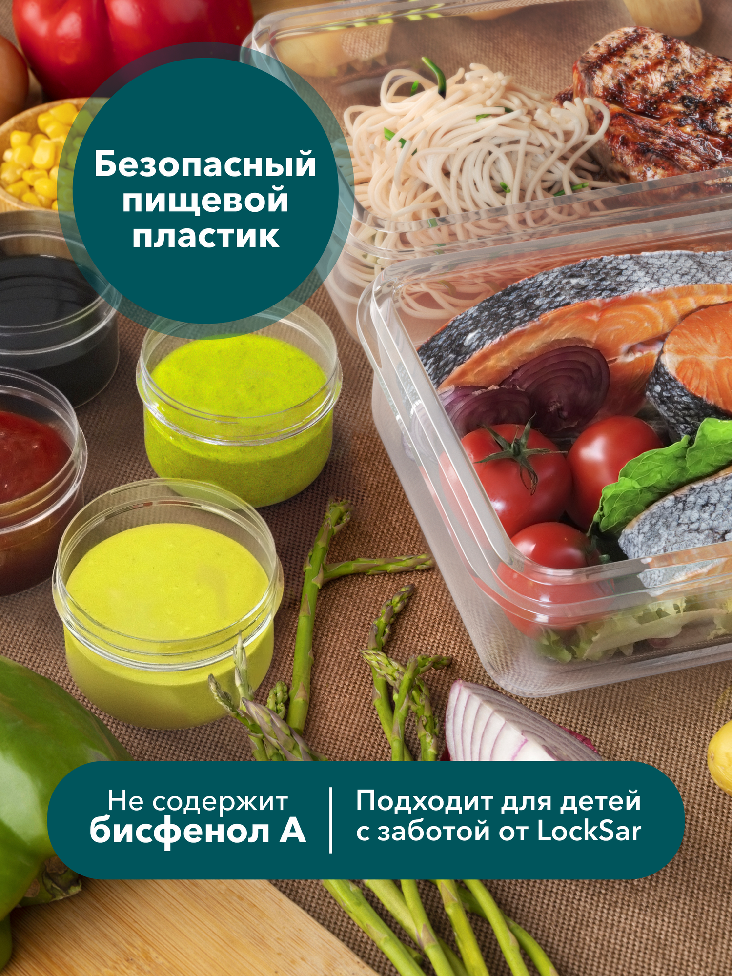 Контейнер для еды герметичный 6 шт LockSar набор контейнеров для хранения продуктов 0,24 л; 0,5 л; 1 л; 1,5 л