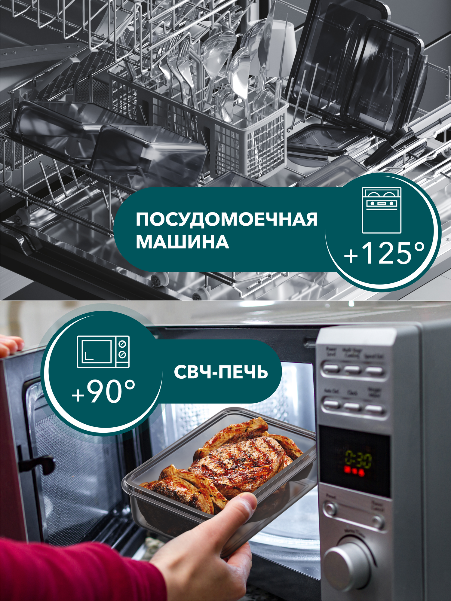 | Особенности | использование для заморозки / можно использовать в свч / можно мыть в посудомоечной машине / с крышкой / термостойкий |