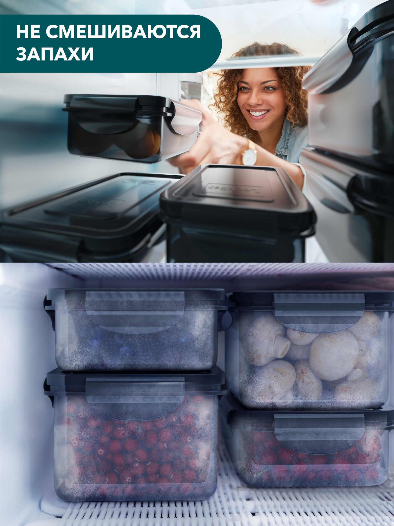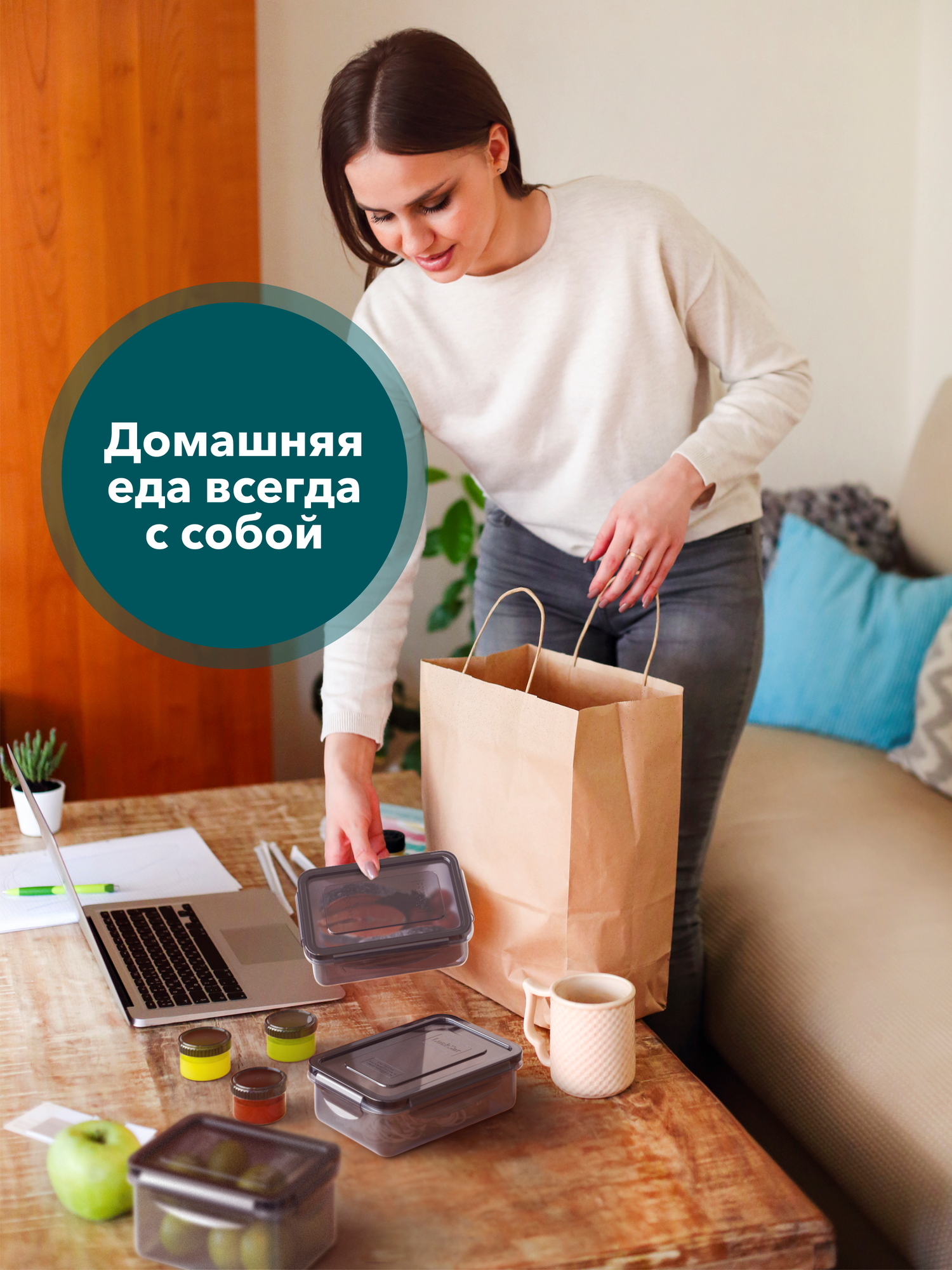 Контейнер для еды герметичный 6 шт LockSar набор контейнеров для хранения продуктов 0,24 л - 2 шт; 0,5 л - 2 шт; 1 л - 1 шт; 1,5 л - 1 шт цвет дымчатый