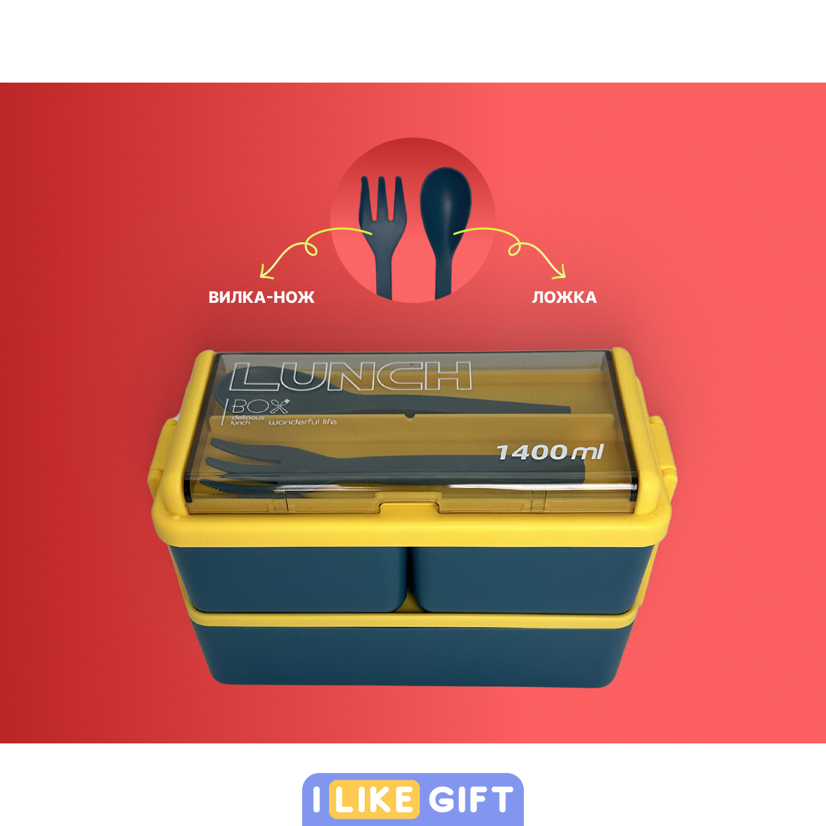 Ланч-бокс контейнер с отделениями и приборами "Big life" синий/желтый, пластик, 1400 мл интересное: