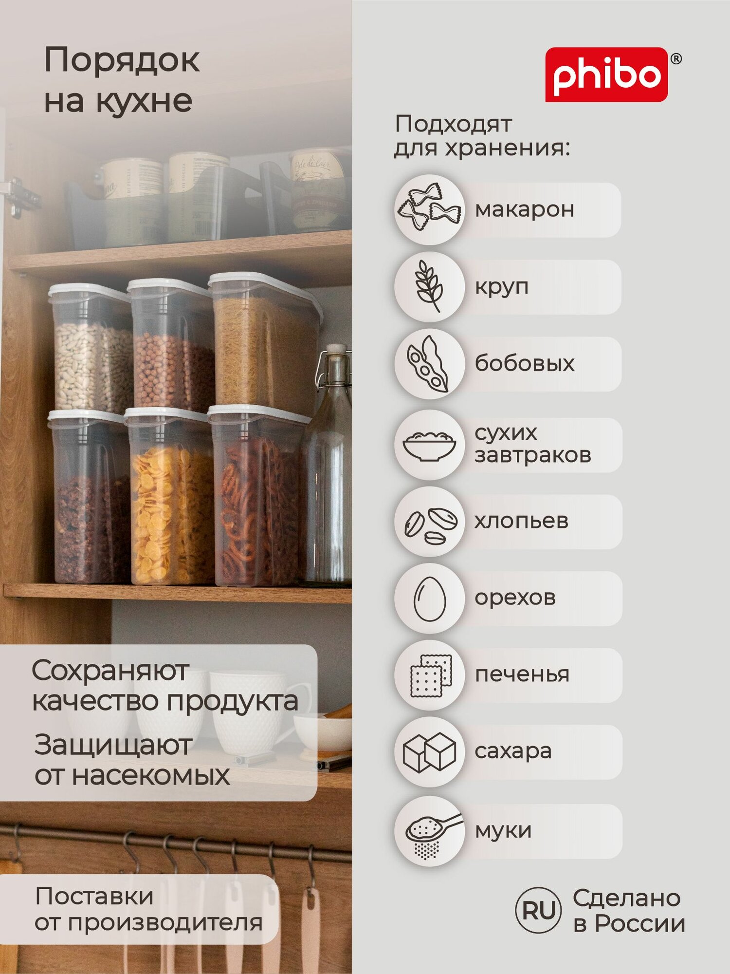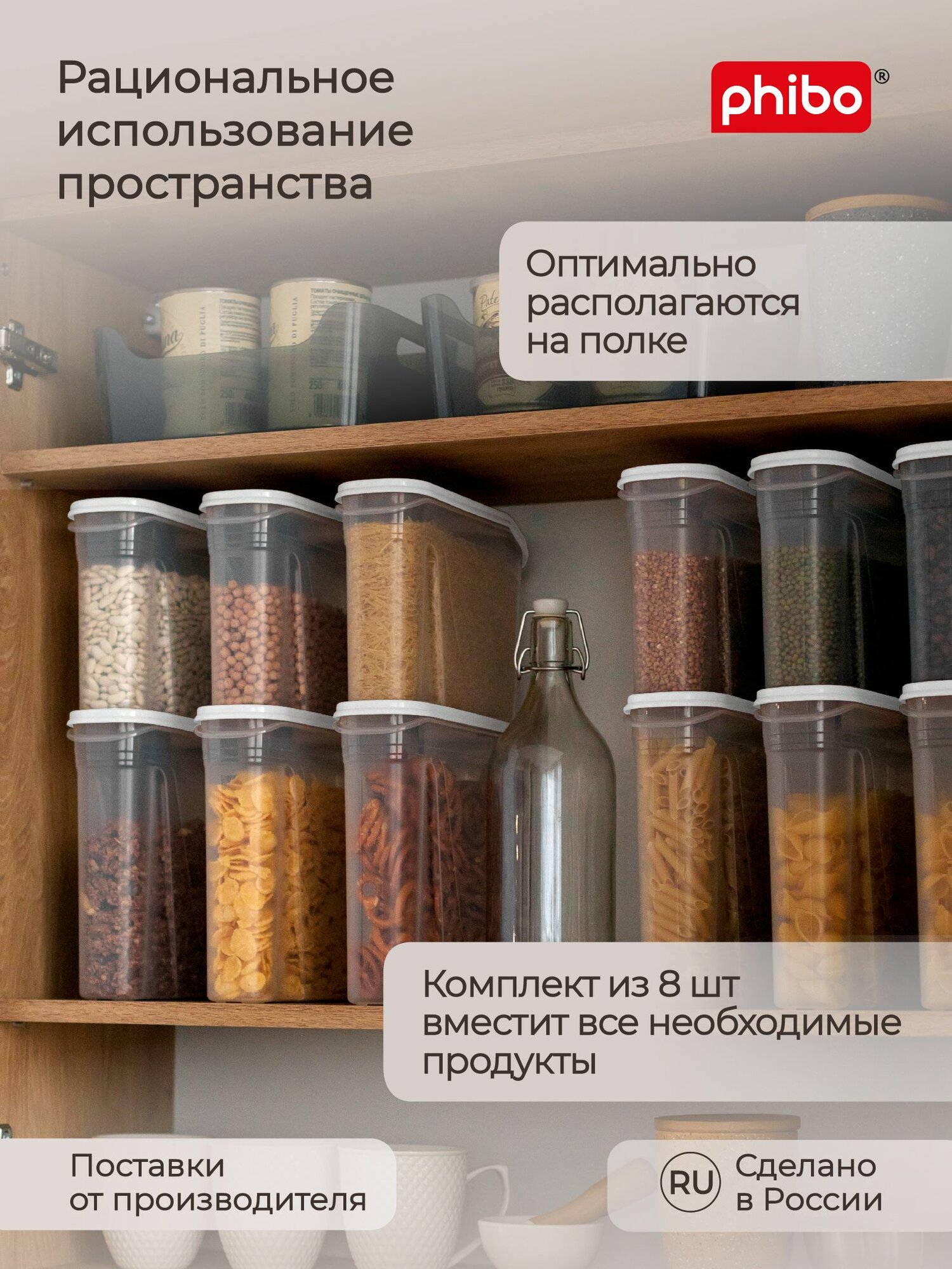 Комплект емкостей для сыпучих продуктов 2,0л, 8 шт, (Белый), Phibo интересное: