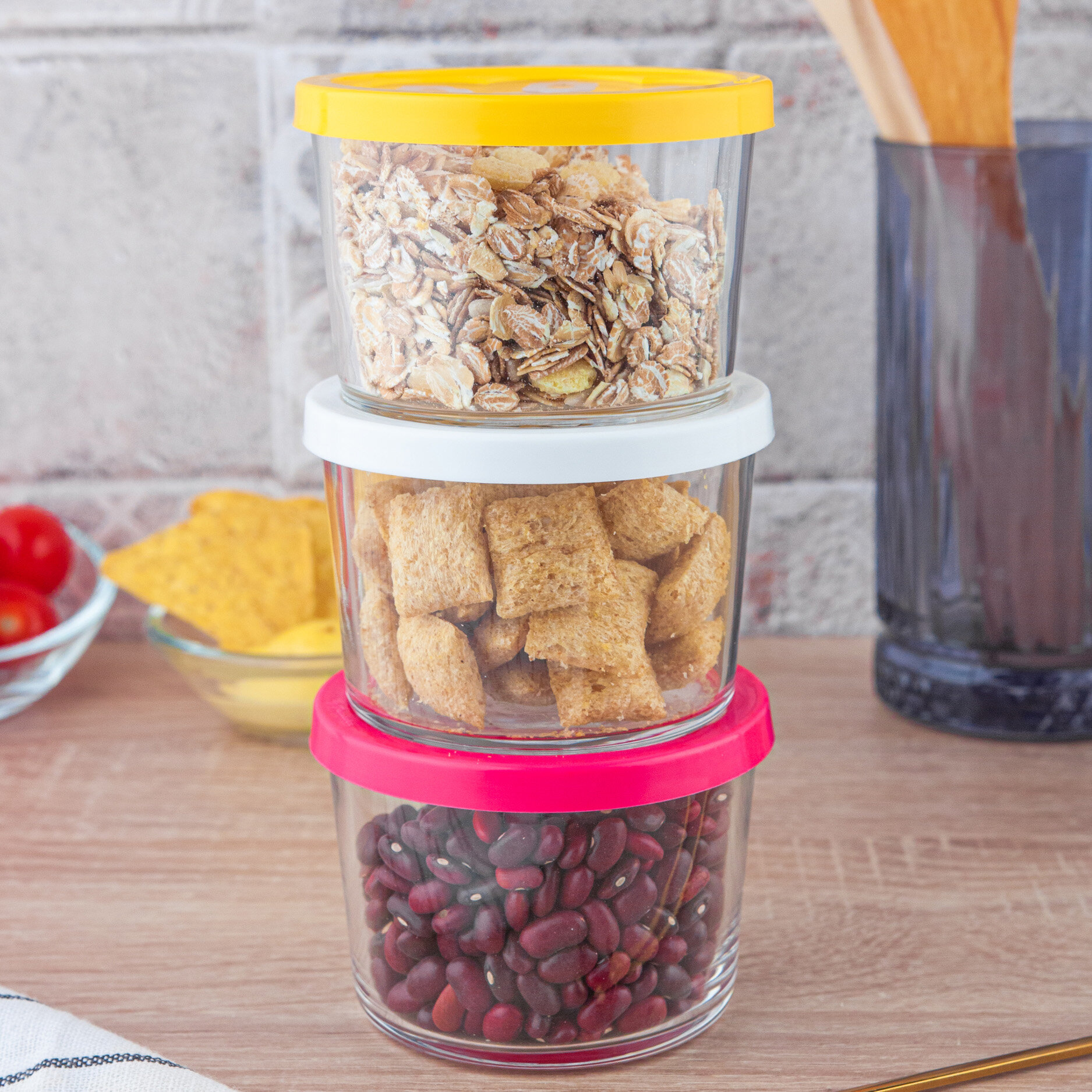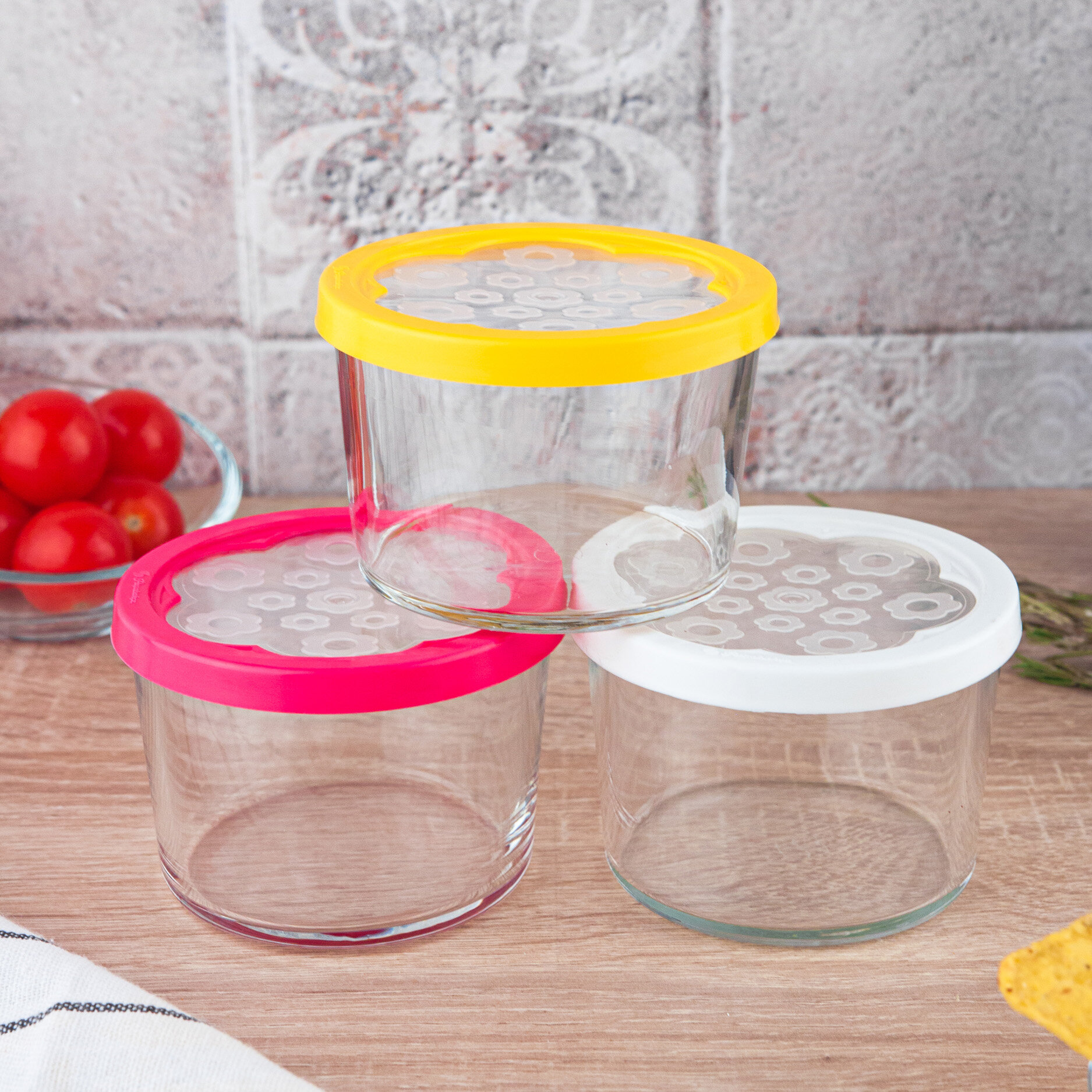 Банки для хранения 3шт бейзик 220мл (бел.,желт.,фукс.кр)