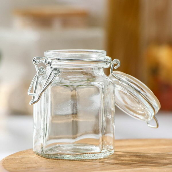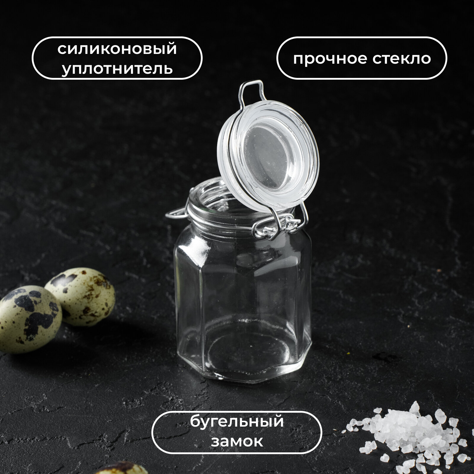Банка стеклянная для сыпучих продуктов с бугельным замком Доляна «Грани» 100 мл