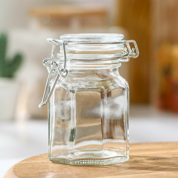 Купить Банка для сыпучих продуктов "Грани", 100 мл, 6x7x8 см, с бугельным замком, стекло, прозрачная