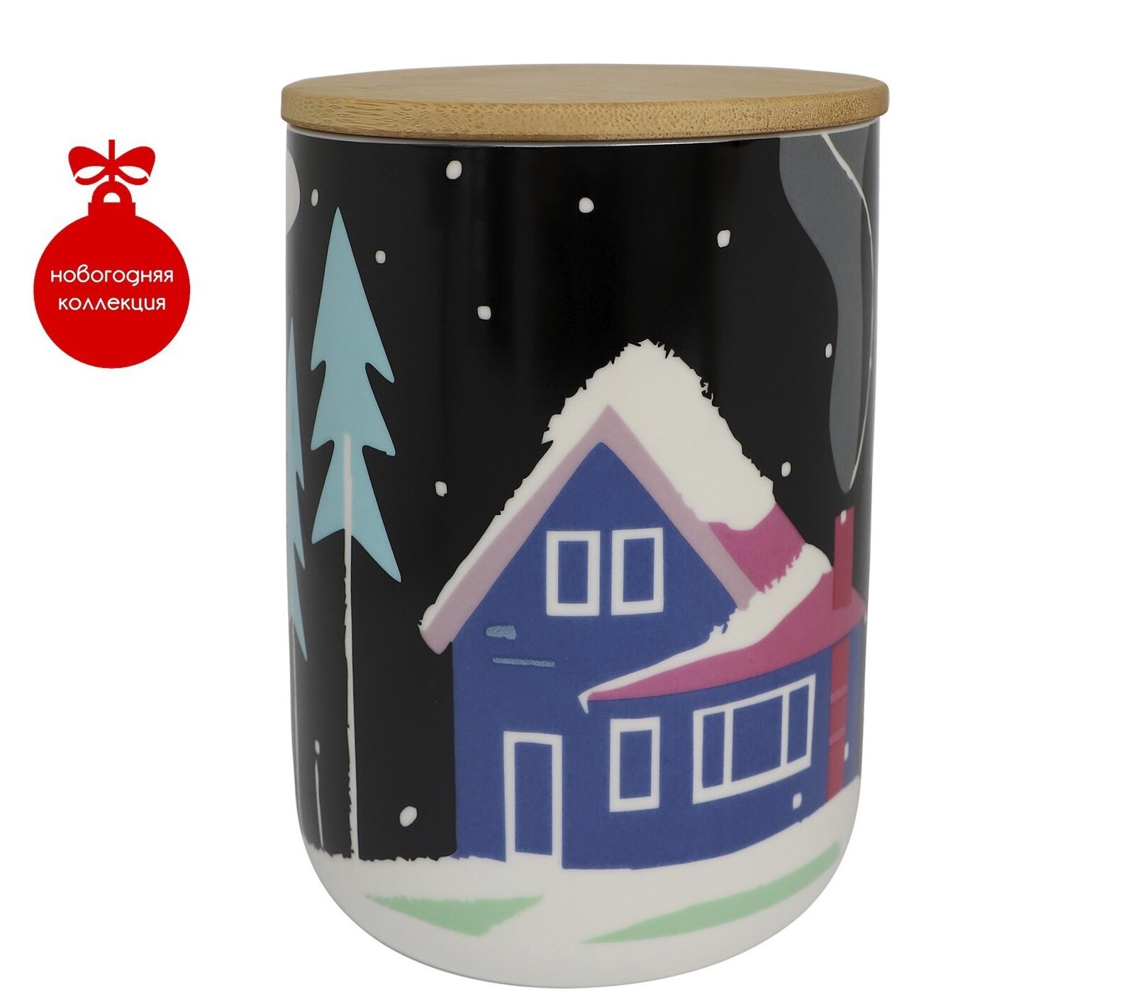 Банка фарфоровая для сыпучих продуктов Доляна «Новый год. Домик», 860 мл
