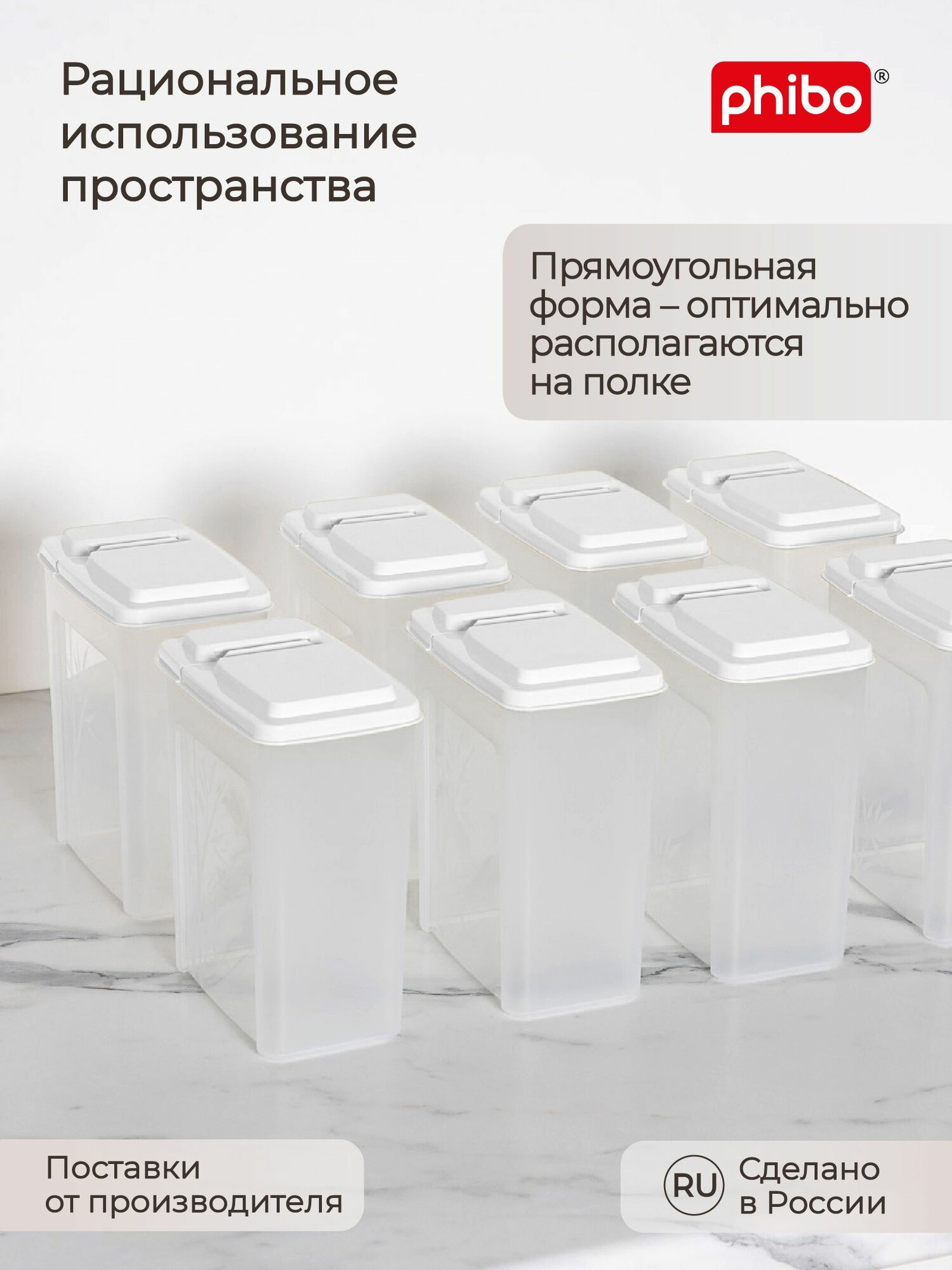 Купить Комплект емкостей для сыпучих продуктов 1,75л 8 шт, (Белый), Phibo
