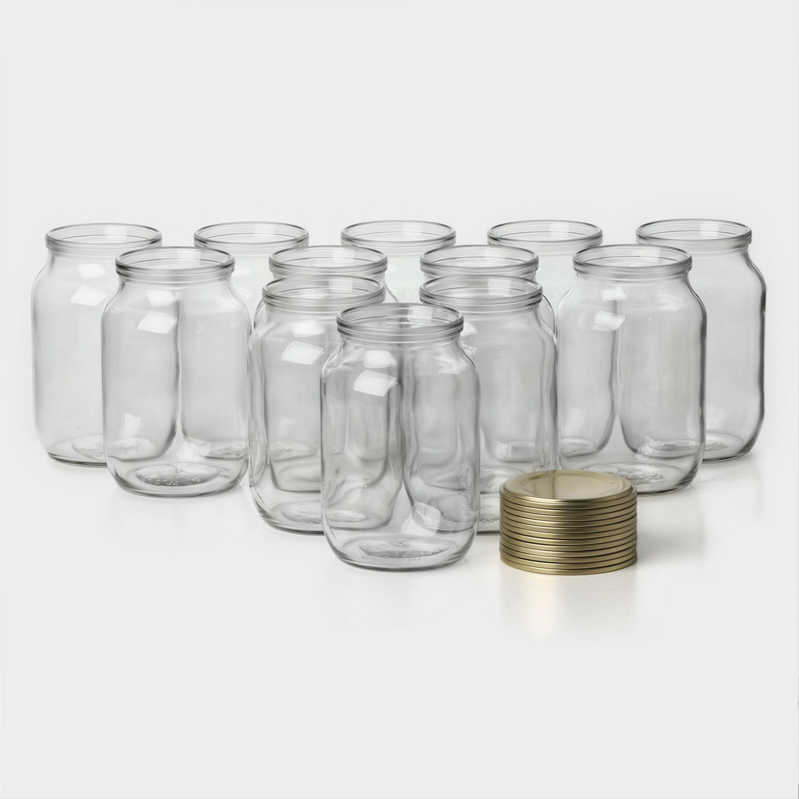 Набор стеклянных банок с крышкой Доляна, СКО-82 мм, 1 л, 12 штук