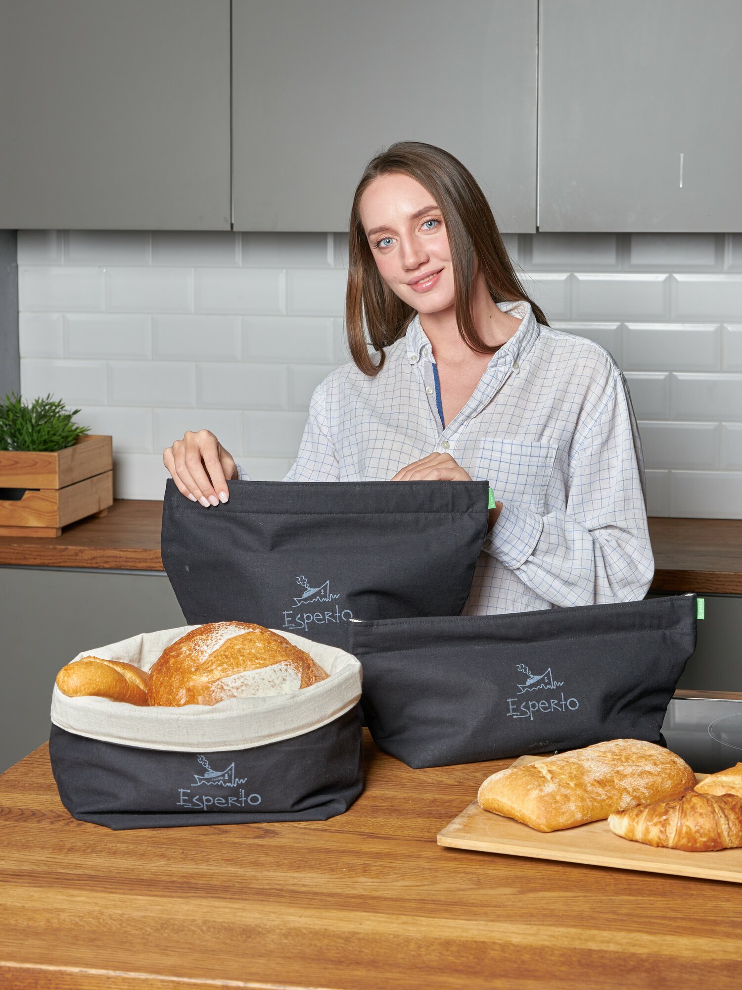 Хлебница, льняной Хлебный клатч™ / 43х34 чёрный / лён, мембрана 3 слоя, карман для сорбента, магнит застёжка / мешочек для хлеба Esperto "Lite" L