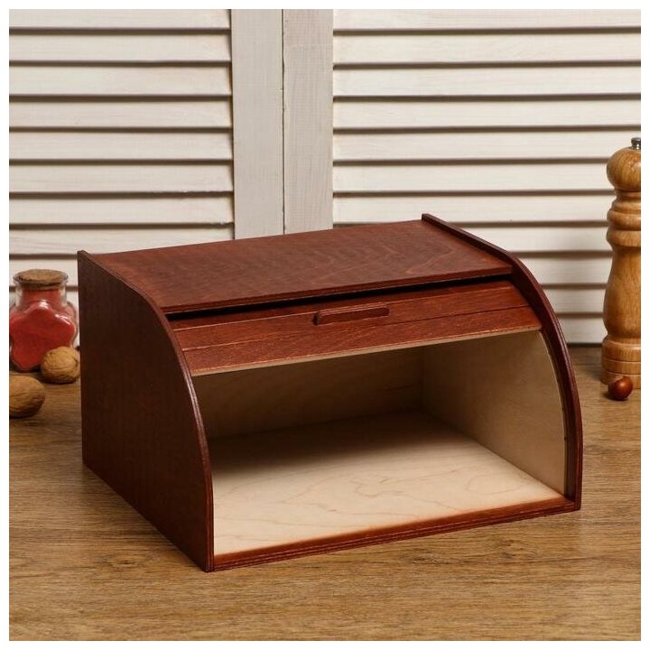 Хлебница деревянная "Корица", прозрачный лак, цвет орех, 29×24.5×16.5 см