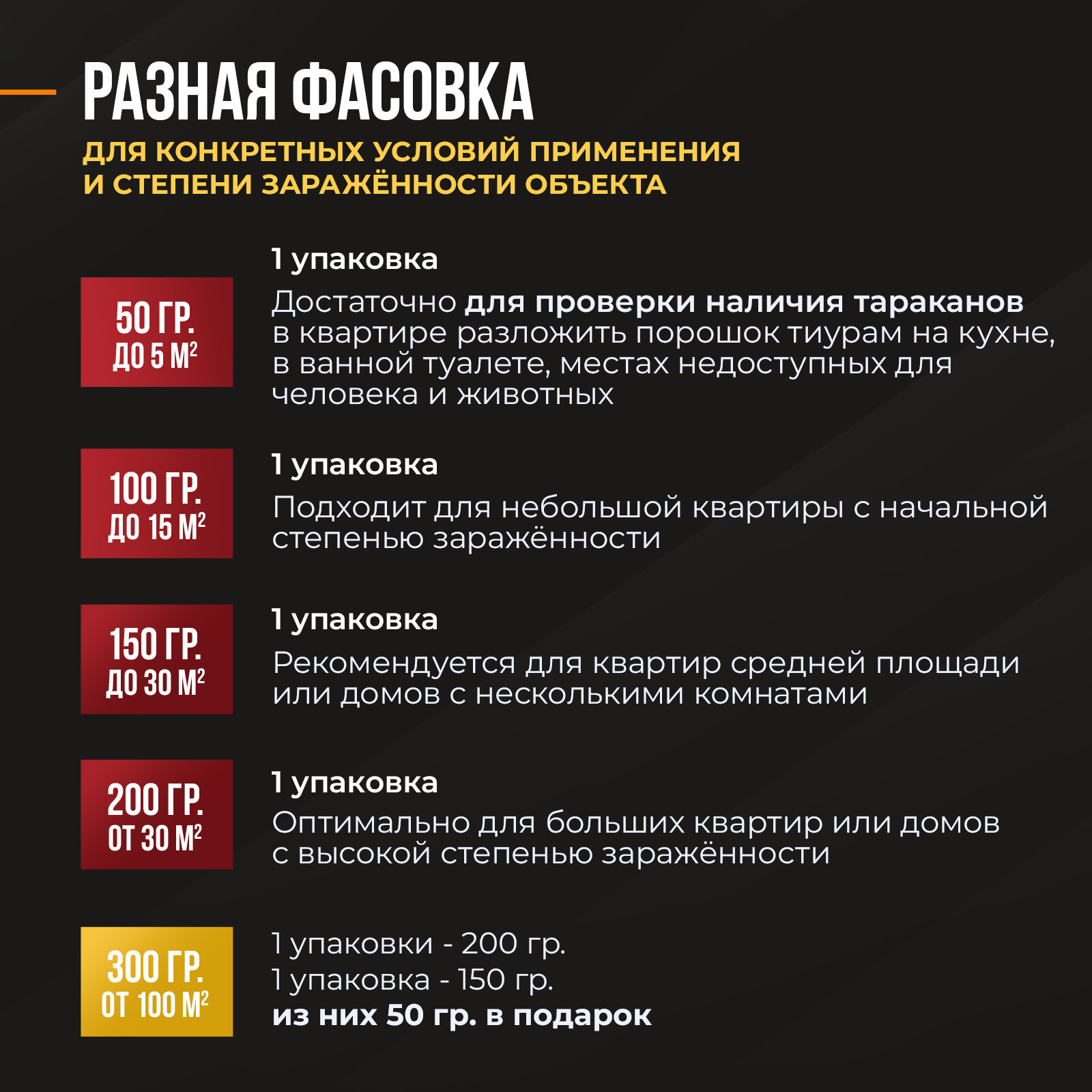 Средство от тараканов, Тиурам 300г+50г, Самое мощное средство от тараканов в квартире, от муравьев, отрава для мышей, кабельный порошок.