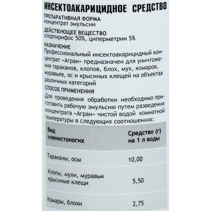 Сохранить"Агран" от НПО Гарант 1 л. - инсектицид для борьбы с клопами, мухами и осами интересное:
