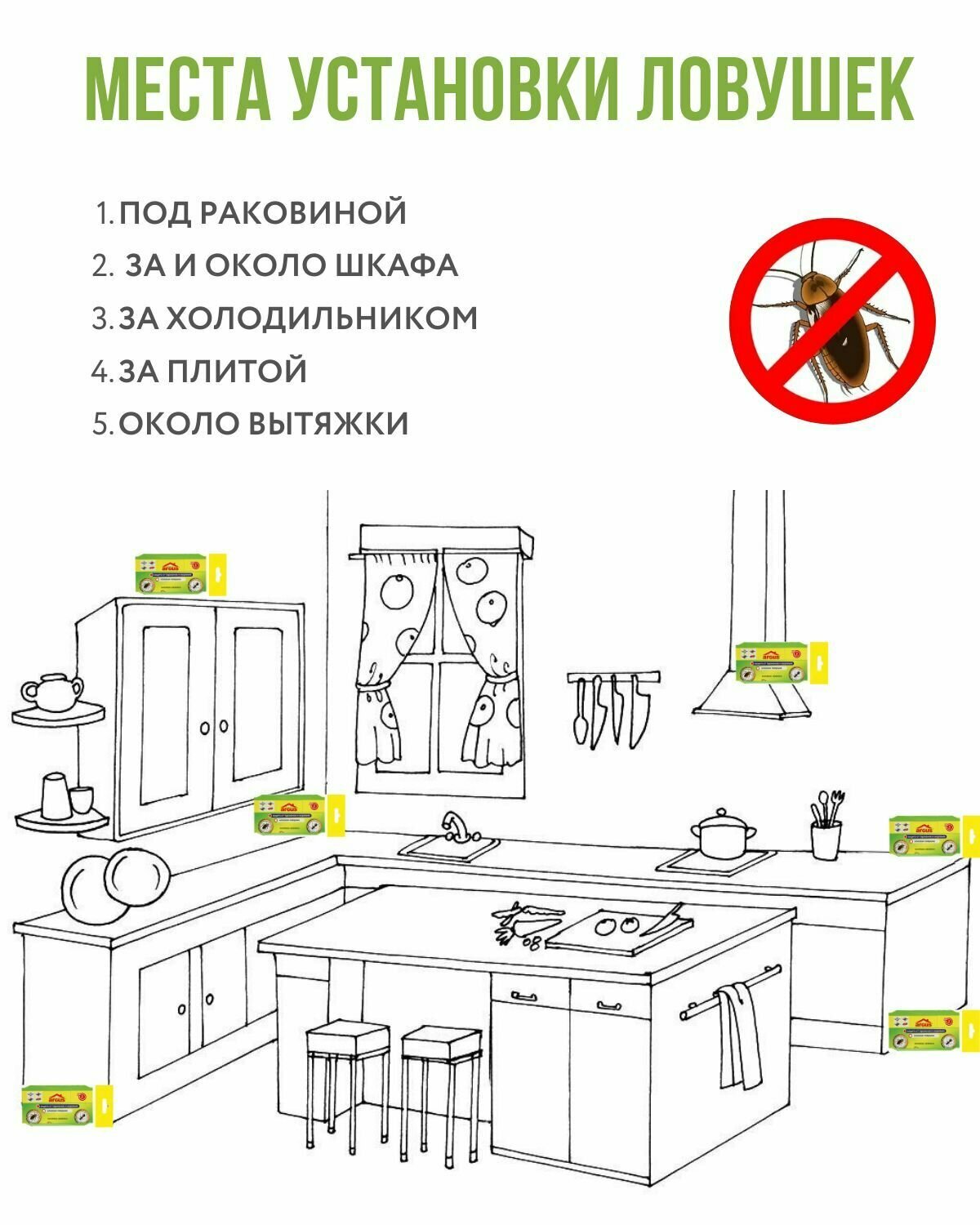 Argus Аргус клеевые ловушки от тараканов с приманкой - аттрактантом, средство от тараканов 8 шт